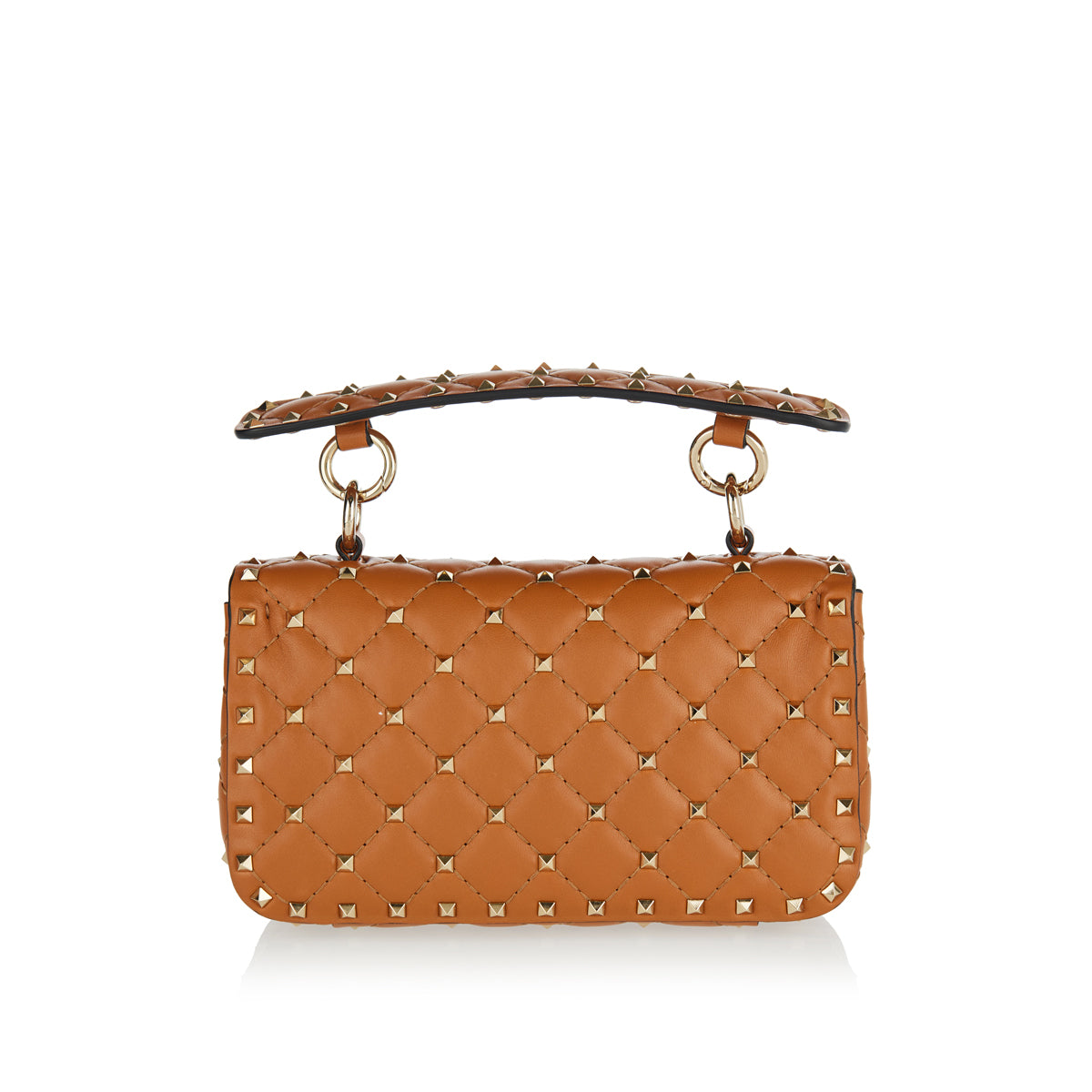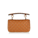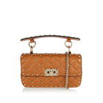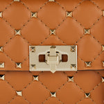 Elevate your style with the Valentino Garavani Rockstud Spike Small Leather Bag—a timeless statement of luxury and sophistication. Crafted from supple leather in a diamond-quilted design, this iconic piece is adorned with signature gold-tone Rockstuds. Featuring a structured flap top with a twist-lock closure, a removable handle, and a single compartment with an open pocket, it offers both elegance and practicality. Wear it as a shoulder bag with the detachable chain strap for effortless versatility.