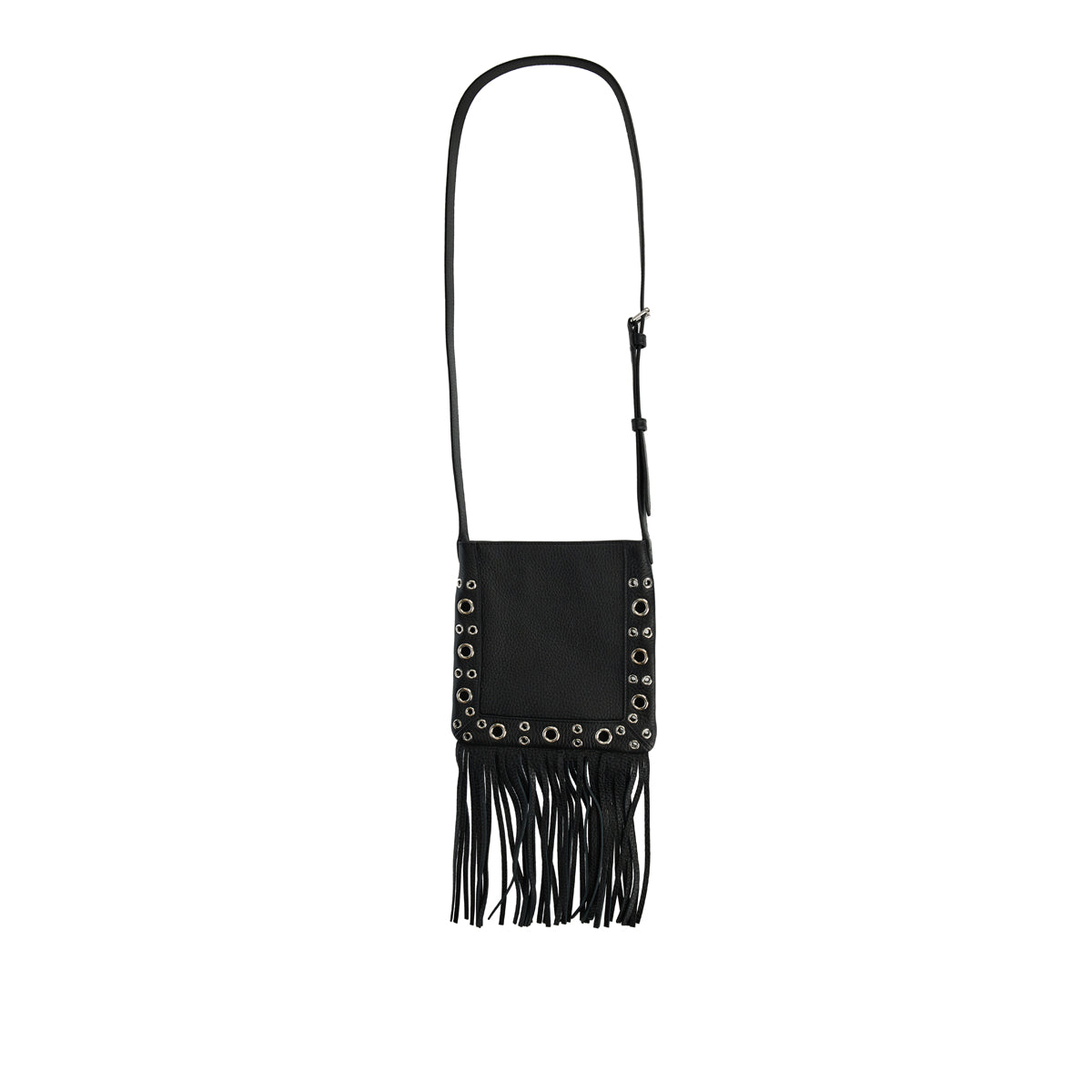 Valentino Garavani’s crossbody bag is crafted from supple black leather, offering a sleek and versatile design for daily use. With its compact rectangular silhouette, adjustable strap, and discreet logo detailing, it balances practicality with understated elegance, making it an essential urban accessory.