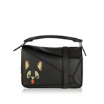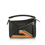 A sculptural bag defined by distinctive geometric lines and a cuboid form, rendered in classic calfskin and enriched with leather marquetry “Futurist Cat” motifs. Its compact, structured silhouette — with adjustable shoulder/crossbody strap or hand‑carry handle — brings refined elegance to citywear or refined casual looks. Ideal for day‑to‑night styling, it harmonizes craftsmanship, subtle artistry, and everyday practicality.