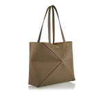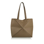 A refined leather tote that marries architectural elegance with everyday practicality. The soft grained calfskin body — stitched in signature puzzle-style geometric panels — forms a structured silhouette that folds completely flat, making it ideal for travel or city commutes. With double top handles and a roomy interior, this tote transitions effortlessly from workday errands to weekend outings, offering subtle luxury and versatility.