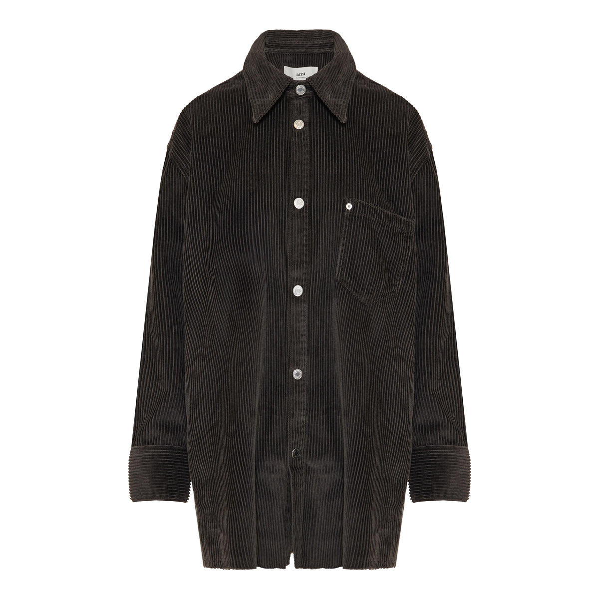 The AMI Paris Corduroy Patch-Pocket Shirt Jacket in grey is a versatile piece crafted from 100% cotton corduroy. It features a pointed collar, button fastening, and a patch pocket on the chest. The jacket also includes side slits for added comfort and style.