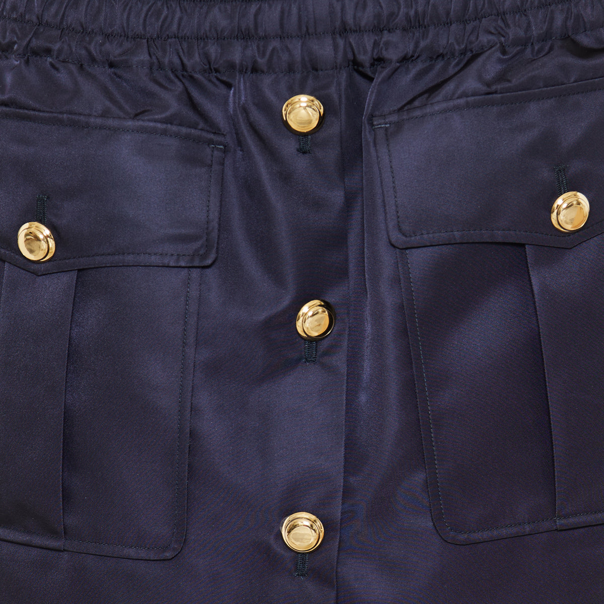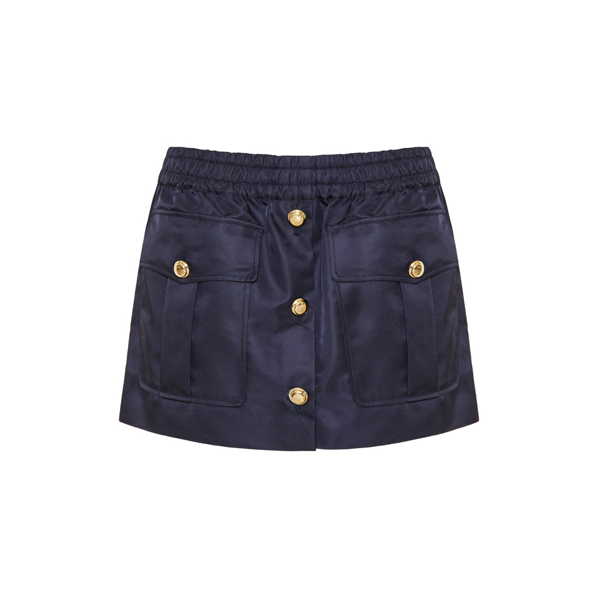 A modern mini skirt from Miu Miu cut in lightweight technical gazar fabric with a clean silhouette and concealed zipper — ideal for elevated casual or refined evening styling.
