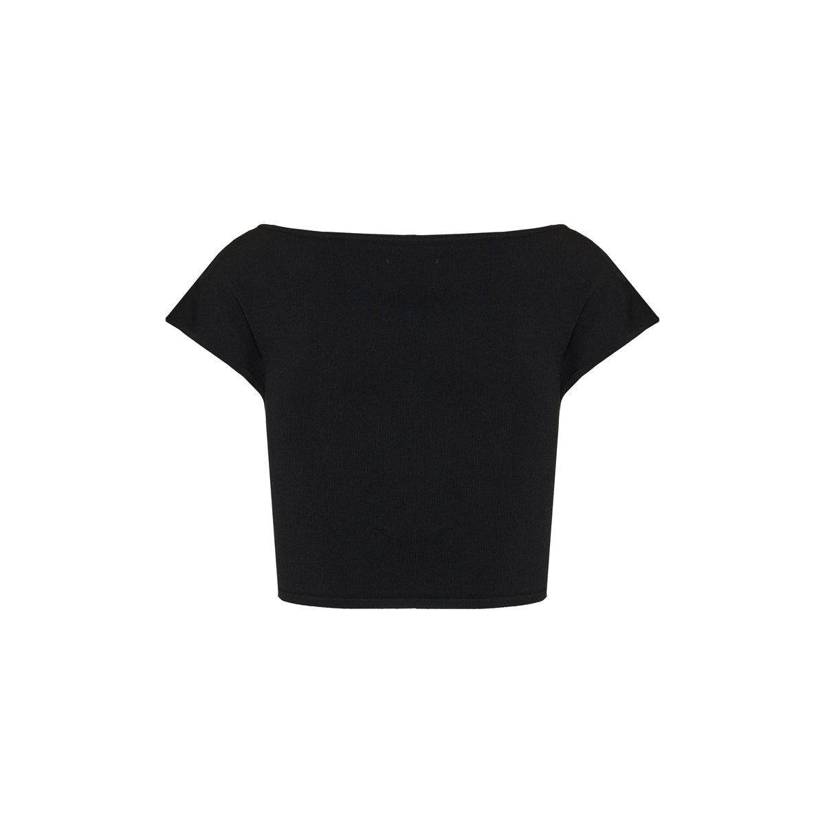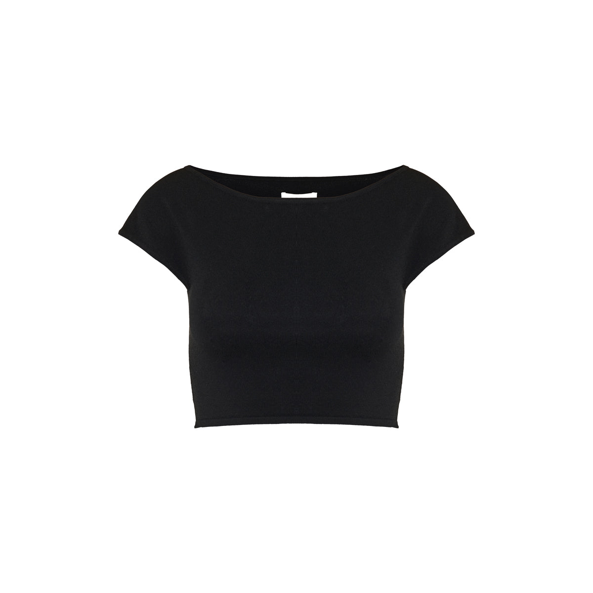 Discover understated elegance with the Loulou De Saison Polly Jersey Top, meticulously crafted from a luxurious viscose knit. This black top features a contemporary tight and cropped fit, perfectly complemented by chic short sleeves and a classic boat neckline.