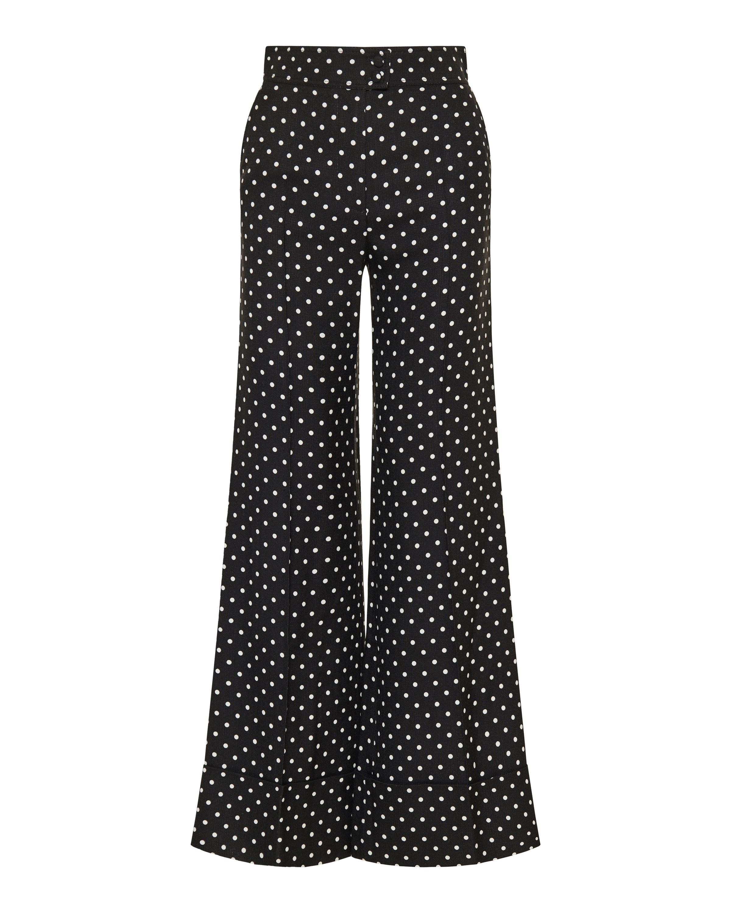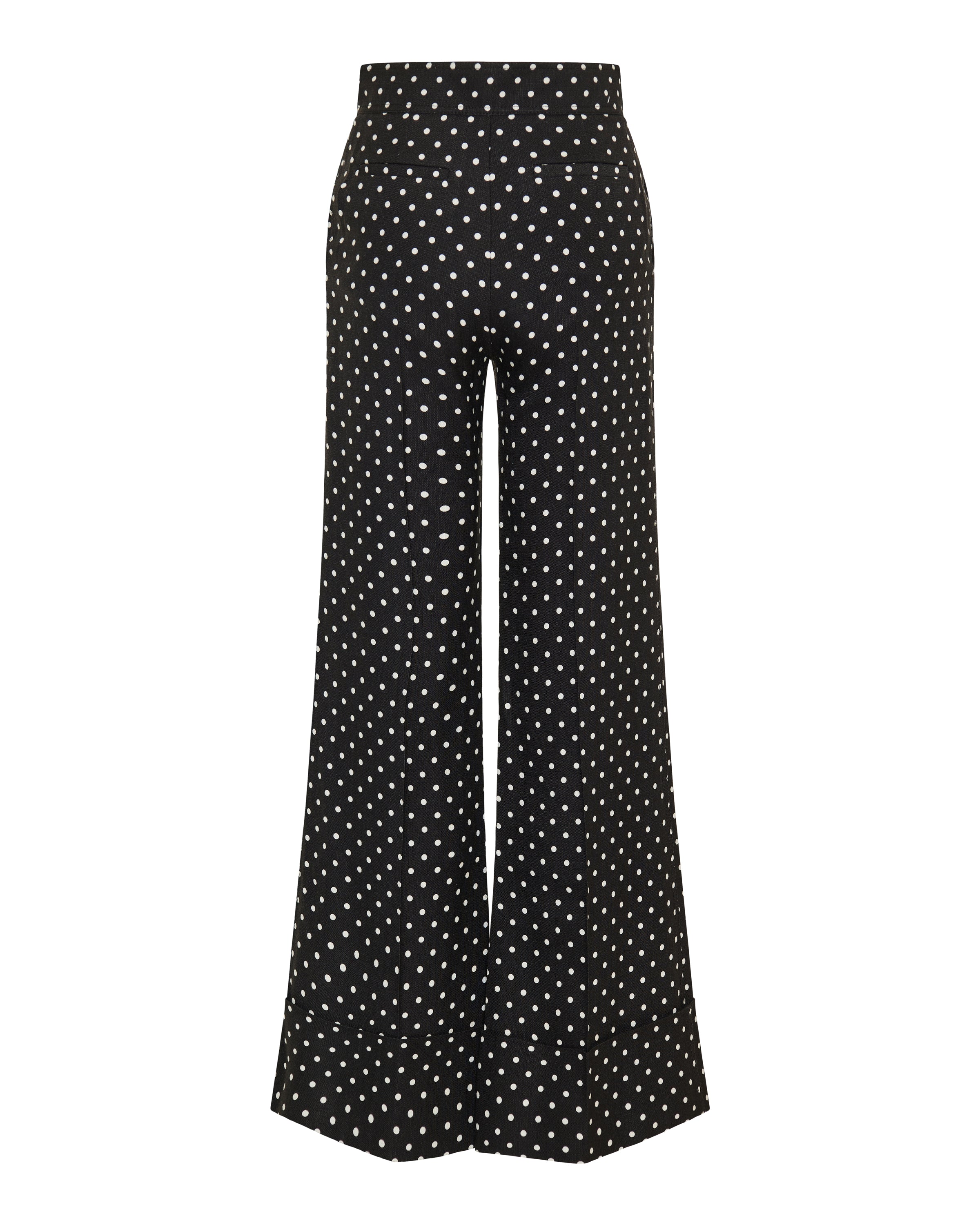 Elegant flared trousers crafted from refined grain de poudre, elevated with Valentino Garavani’s playful polka-dot motif.