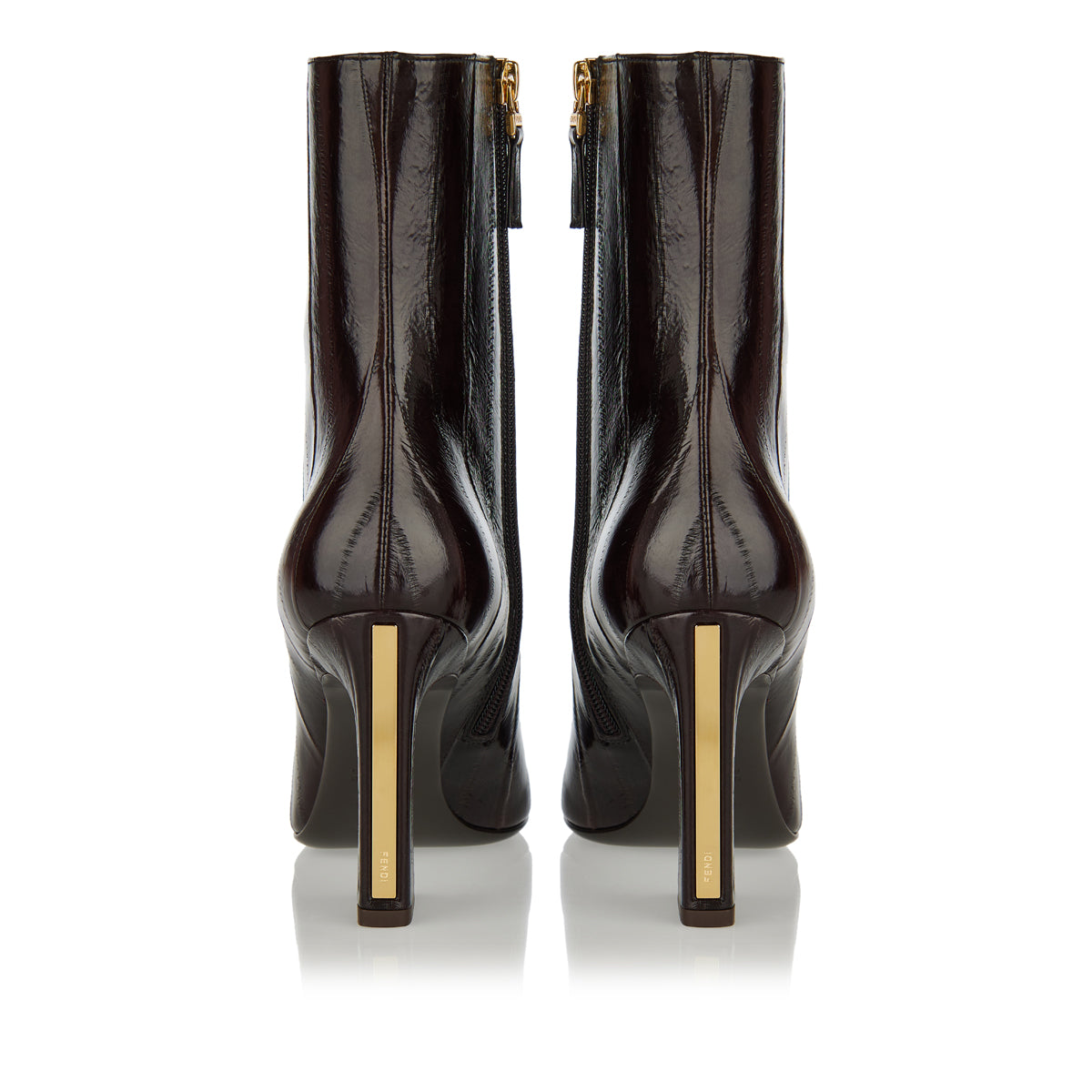 Fendi’s boots are designed with a sleek silhouette that brings modern polish to versatile styling. Crafted from smooth black leather, the design is elevated with subtle branding details and set on a balanced block heel for comfortable height. A refined option that transitions seamlessly from casual daytime wear to elevated evening ensembles.