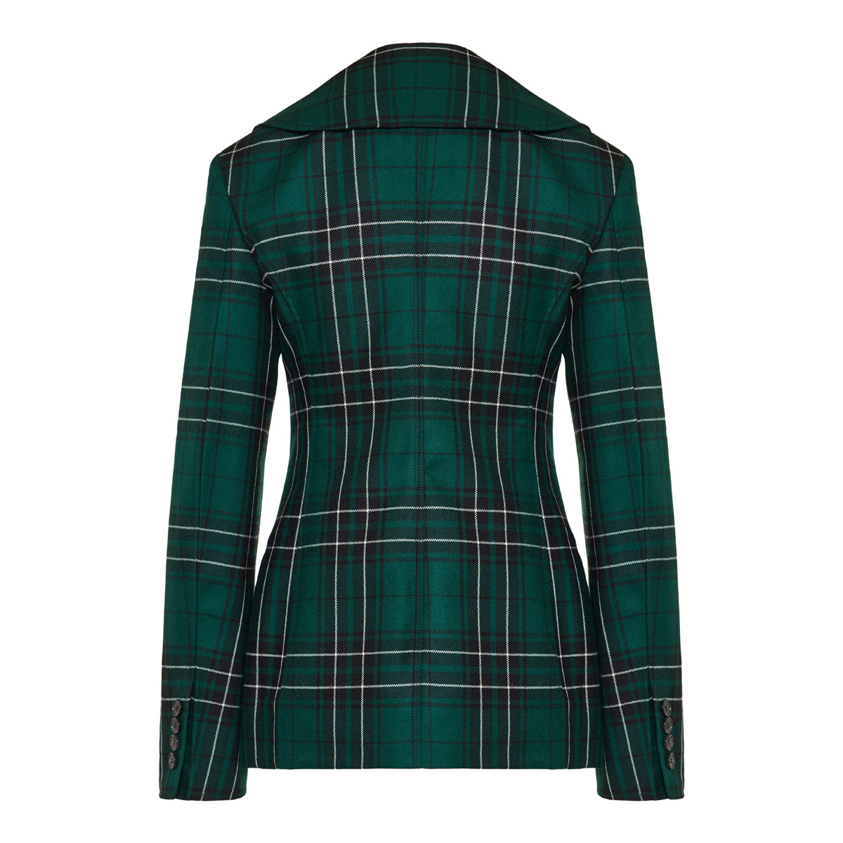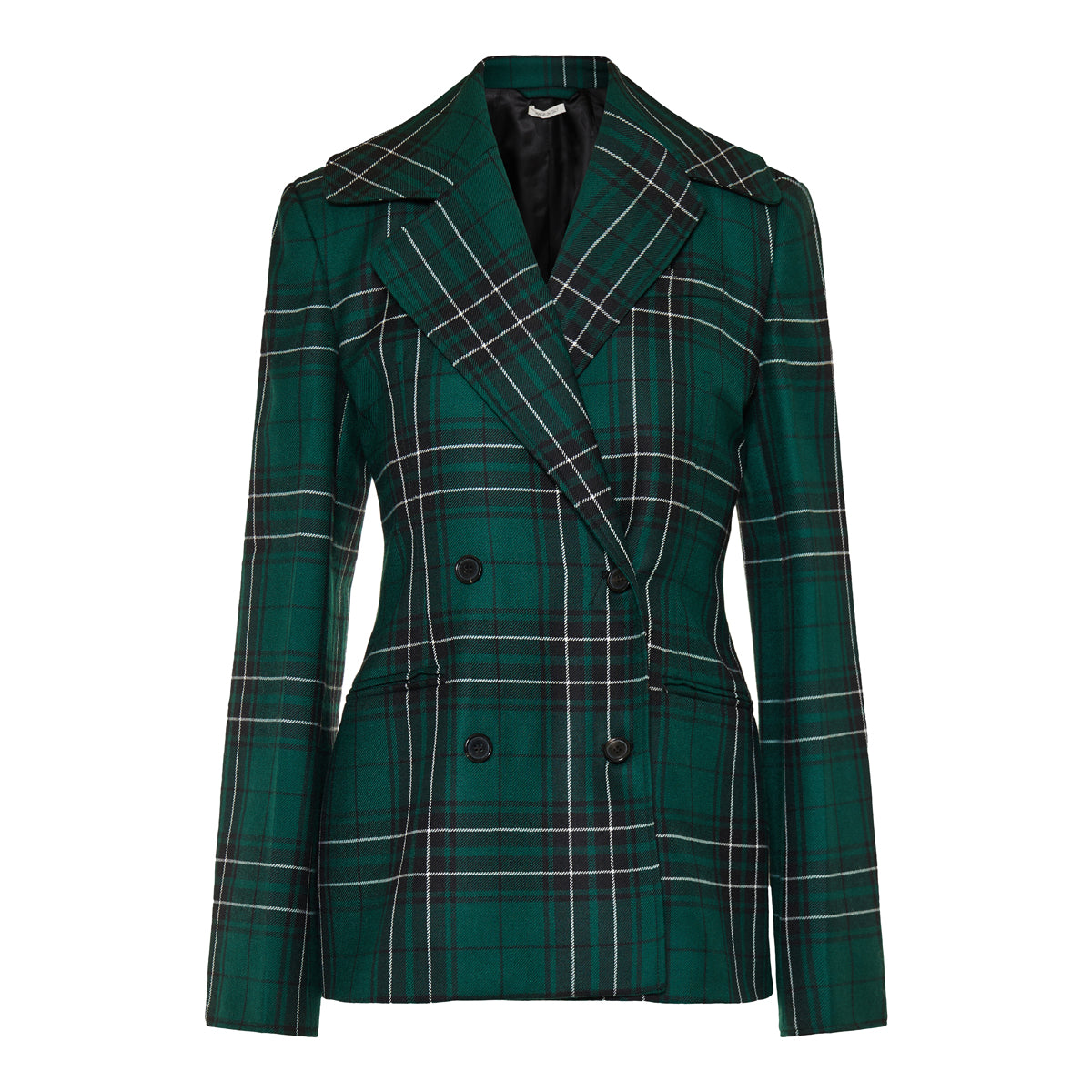 A sculptural double-breasted blazer from JW Anderson, tailored in Italy from 100% wool with a cinched waist and asymmetric wide lapel. Fully lined in cupro, the forest‑green hue and horn buttons evoke refined strength and timeless elegance. Ideal for elevated daily wear, business appointments, or evening engagements.