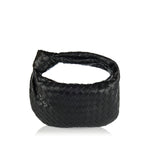 This Jodie model is crafted from leather in a mini rounded hobo silhouette handwoven in the label’s iconic Intrecciato pattern. It has a slouchy design with draping, finished with a knot on the top handle. The zipper opens to one internal compartment equipped with a zipper pocket.