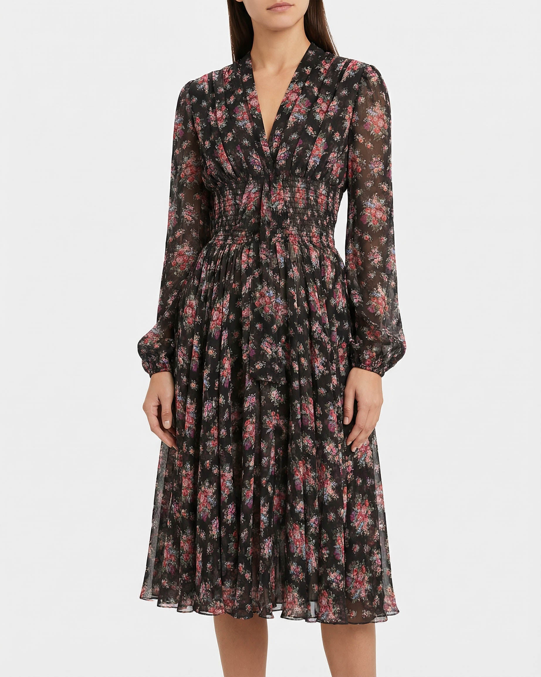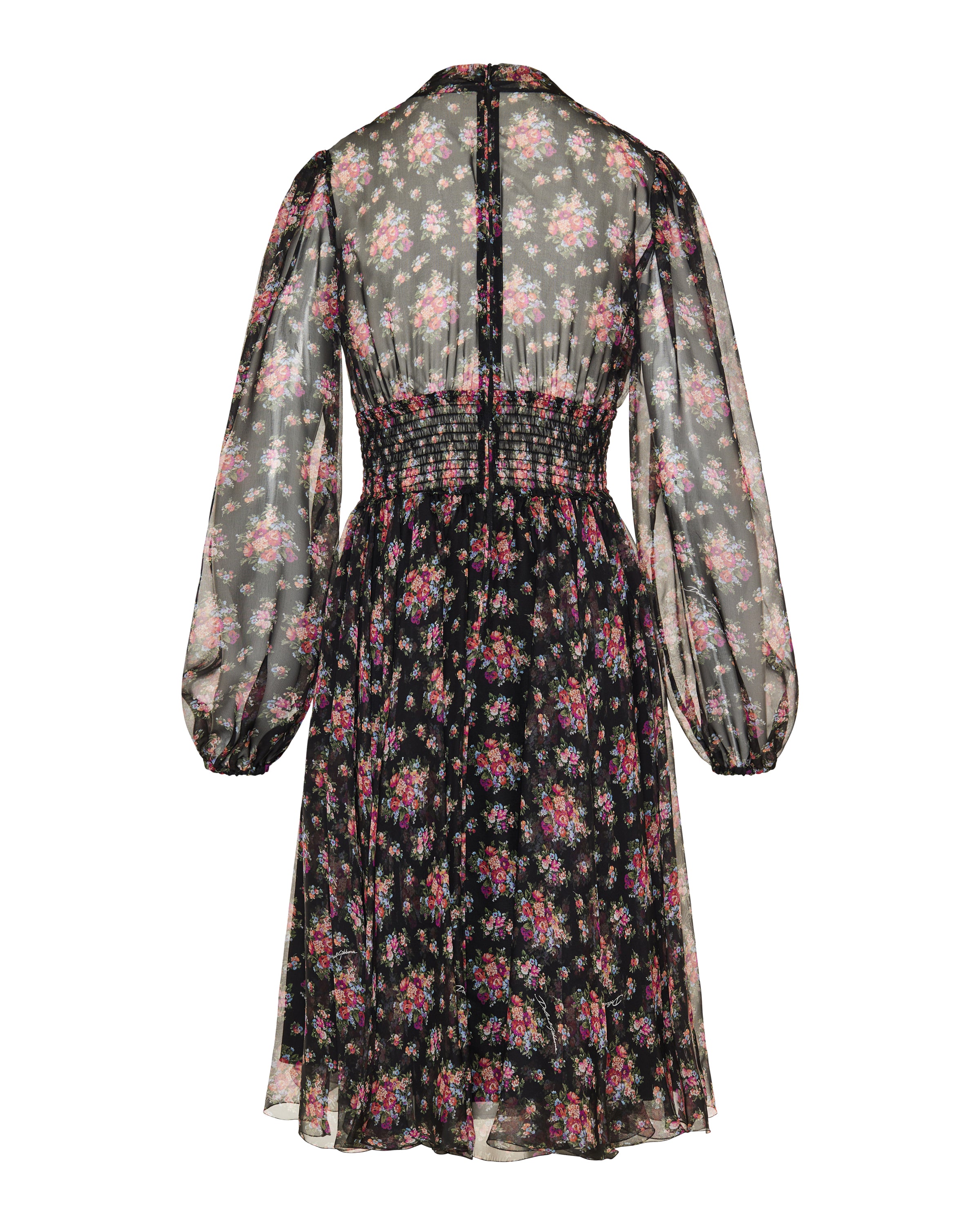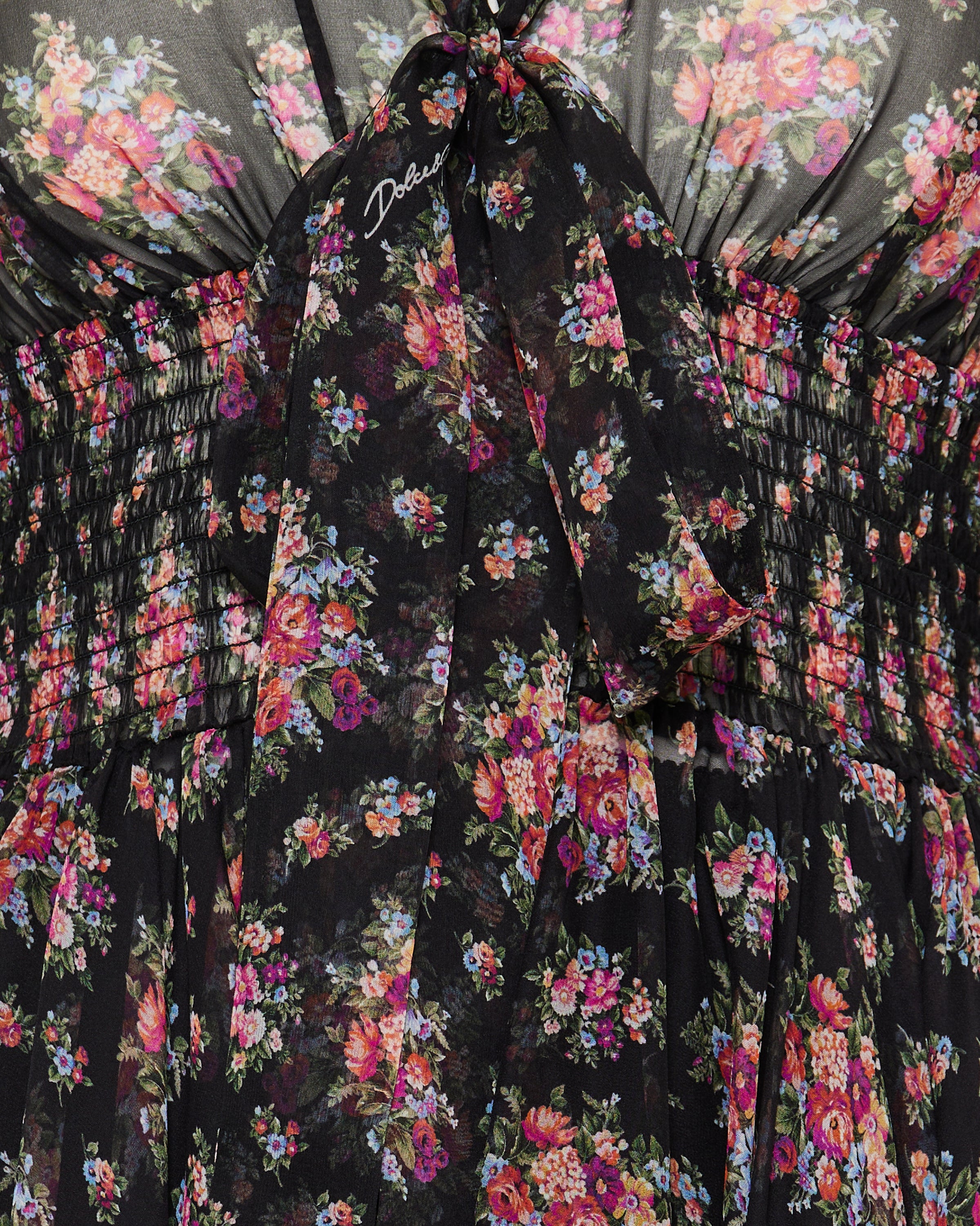 Romantic and expressive, this Dolce & Gabbana dress is crafted from airy chiffon and adorned with a delicate small flower bouquets print. Designed with a fluid silhouette, it captures the House’s signature femininity and Mediterranean spirit, making it ideal for elegant daytime occasions, summer events, and refined evening moments.