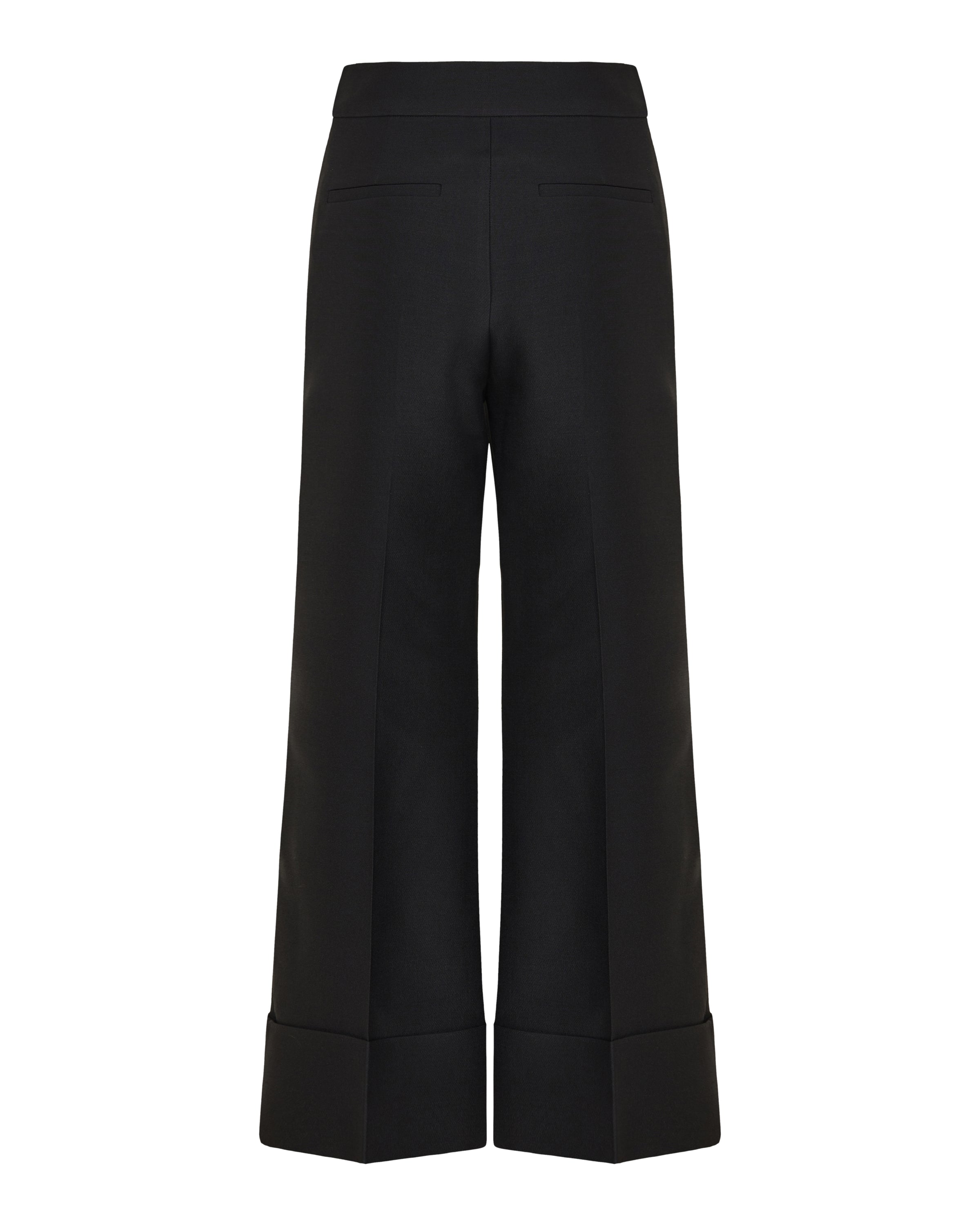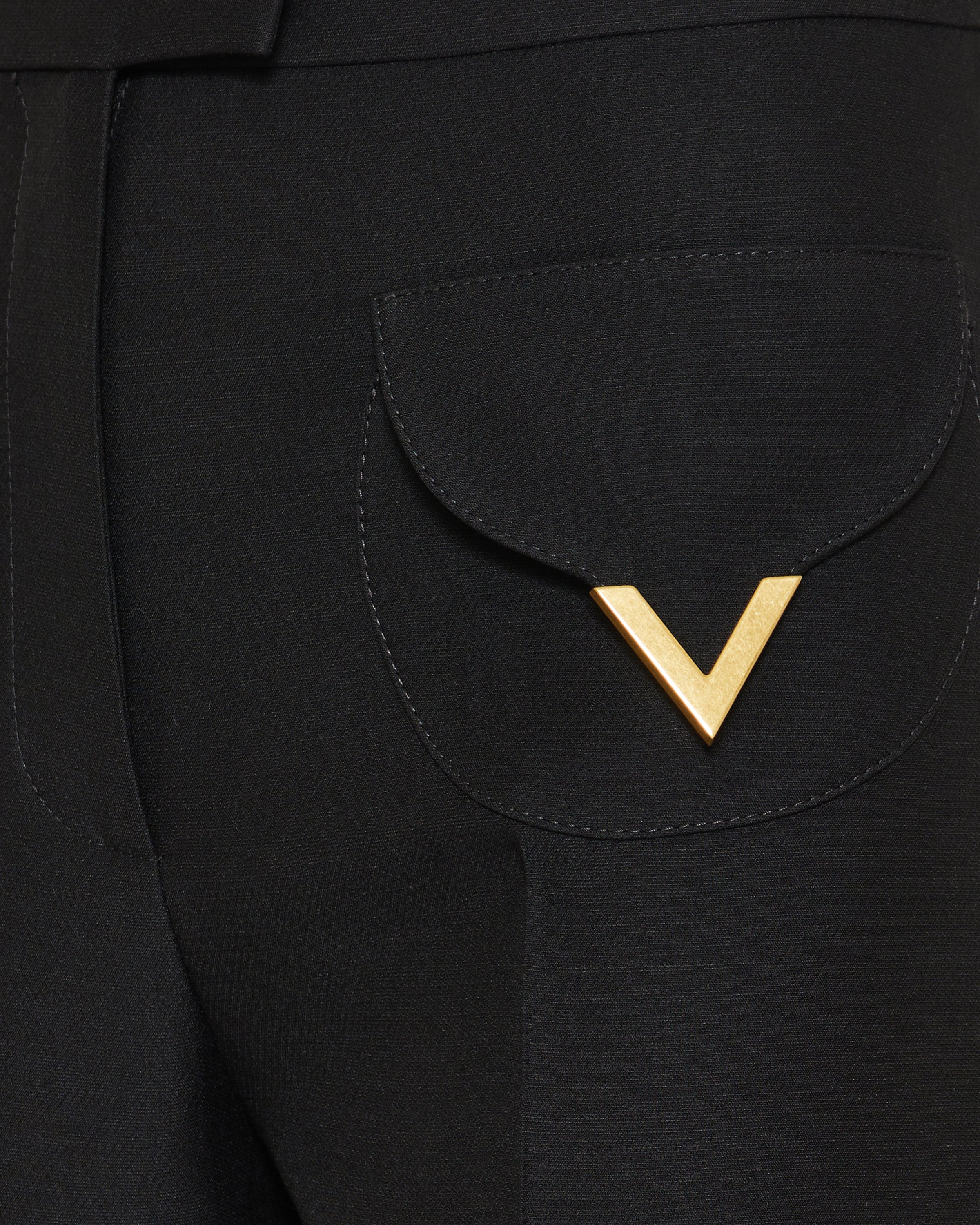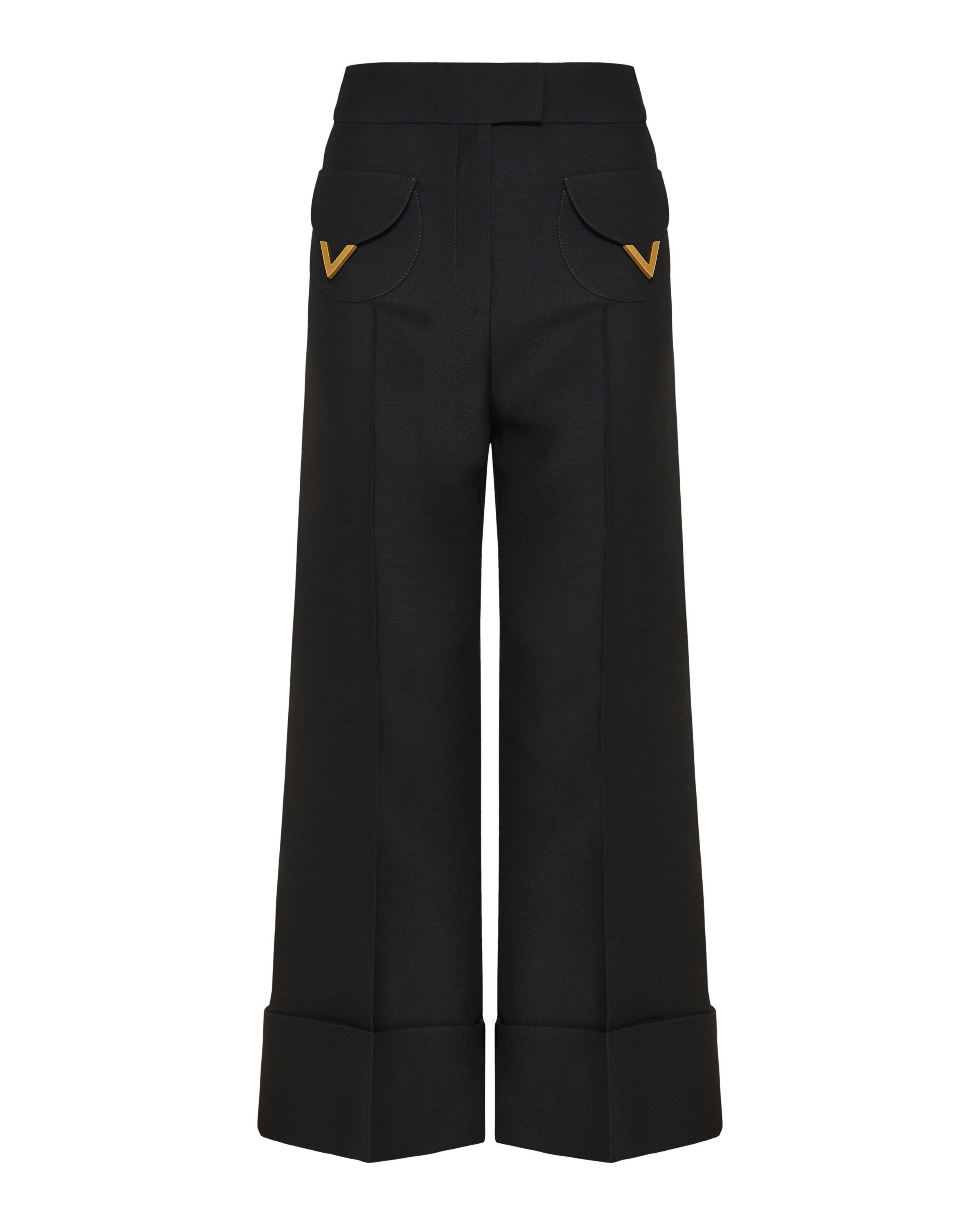 Luxurious wide‑leg trousers crafted from Valentino’s signature Crepe Couture wool and silk blend. Featuring a high‑waisted silhouette with structured tailoring and fluid drape, these trousers offer refined sophistication for elevated formal and polished daytime wear. Perfectly styled with tailored tops or exclusive blazers, they embody Italian couture elegance.