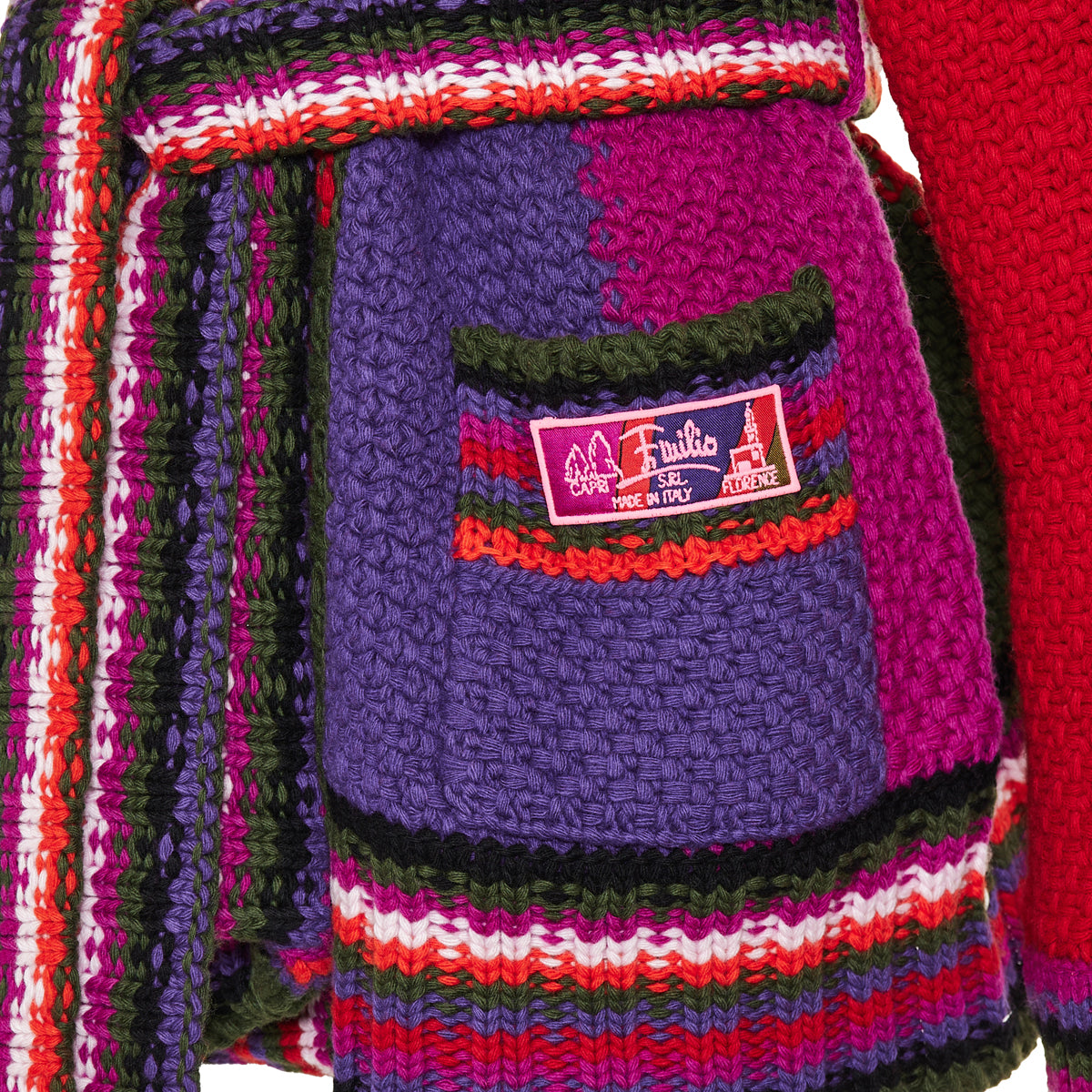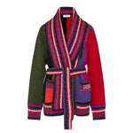 Pucci brings a contemporary update to knitwear with this colorblocked striped wrap cardigan. Spun in pure wool, the relaxed silhouette is enhanced by bold tonal contrasts that reflect the house’s vibrant identity. Designed with a self-tie waist and a fluid drape, this cardigan transitions seamlessly from casual layering to more elevated styling, embodying refined versatility.