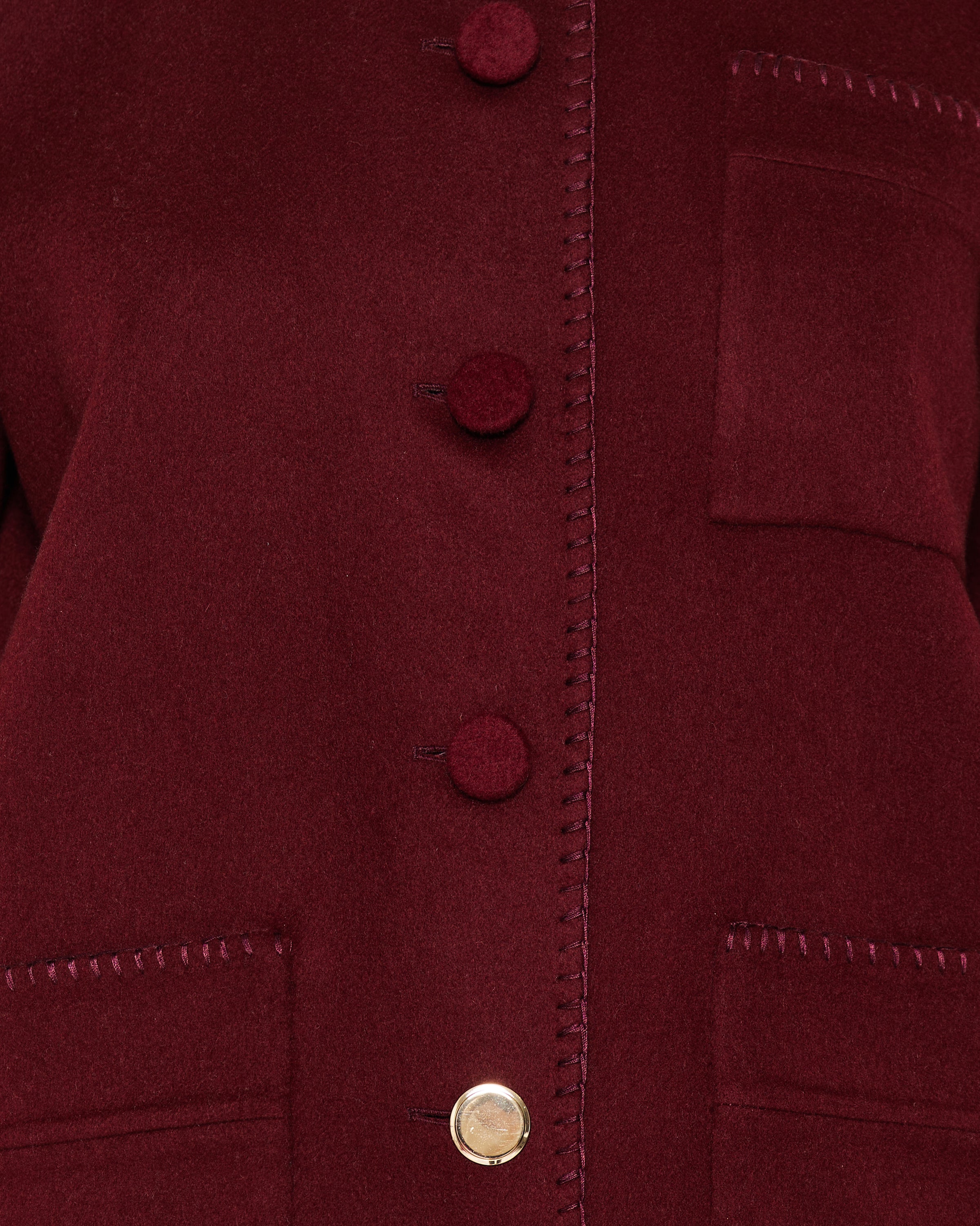 A refined Gabriela Hearst Ulu reversible chore jacket crafted in sumptuous double‑face recycled cashmere with contrasting bordeaux and fuchsia hues and artisanal blanket stitching. Designed for elevated smart‑casual and city wardrobe rotation, it blends heritage utilitarian tailoring with modern sustainable luxury.
