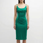 A sophisticated sleeveless midi dress in fluid viscose‑jersey, with sculpted drape and signature Medusa ’95 hardware on the shoulder straps. The design’s clean silhouette and understated elegance make it ideal for refined evening wear or upscale day‑to‑night occasions.