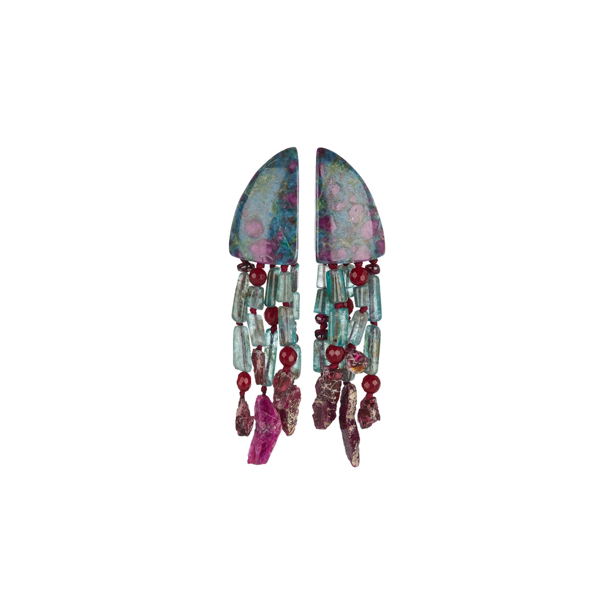 Handcrafted multicolor earrings featuring polished green aventurine stones paired with vibrant red ruby accents. These luxurious earrings blend natural elegance with a striking pop of color, perfect for refined day or evening wear.
