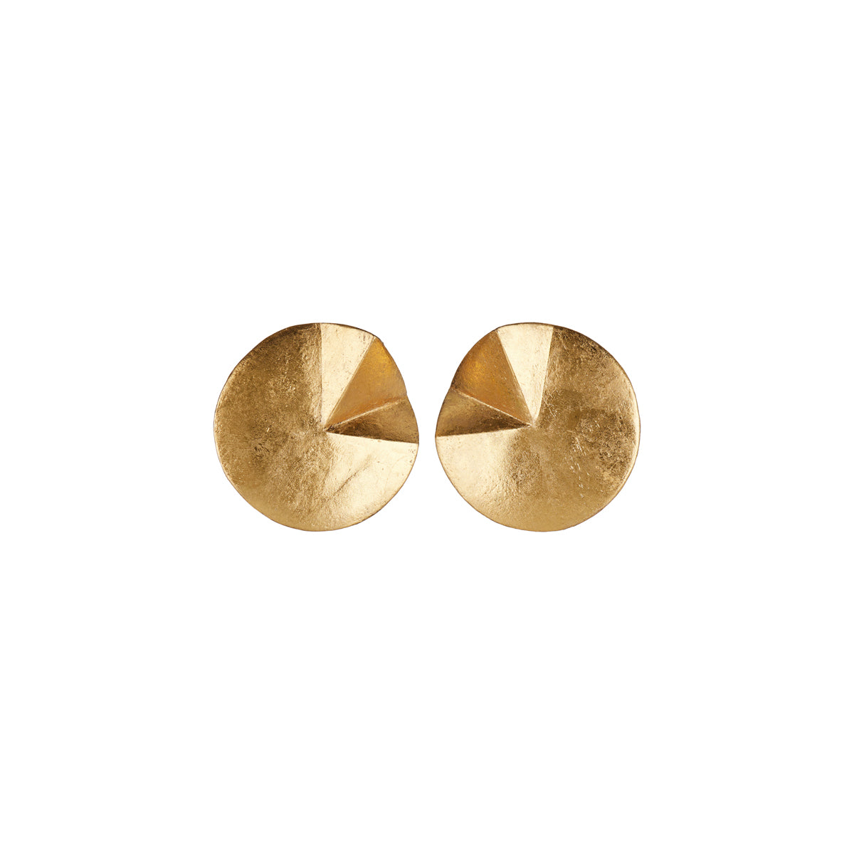 Sculptural and organic, these Monies Nomi earrings combine richly textured acacia wood with shimmering gold‑foil accents and silver‑plated brass hardware, creating a bold yet refined statement accessory.