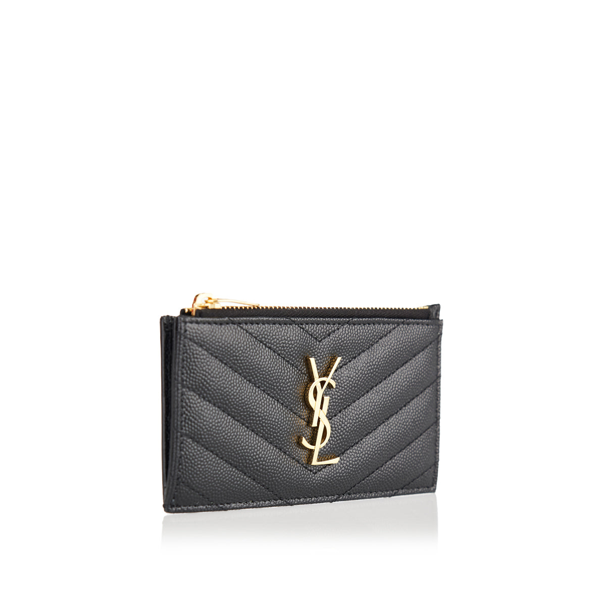 A refined card case crafted from Grain de Poudre leather with metal-free tanning, featuring the Faceted “Cassandre” logo and quilted overstitching. Equipped with a flap and zip pocket alongside multiple card slots, this piece blends elegance and practicality. Ideal for elevated slim wallets or formal accessory arrangements.