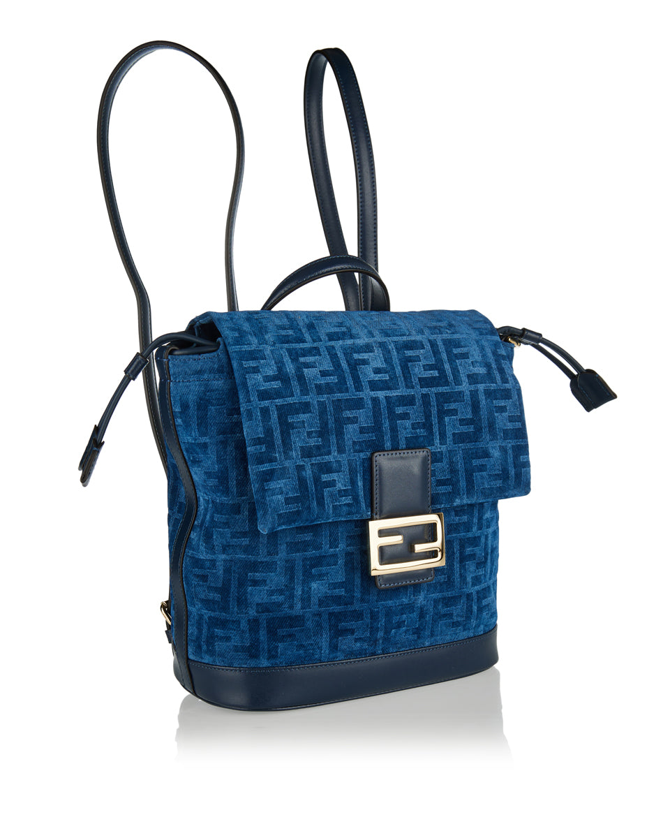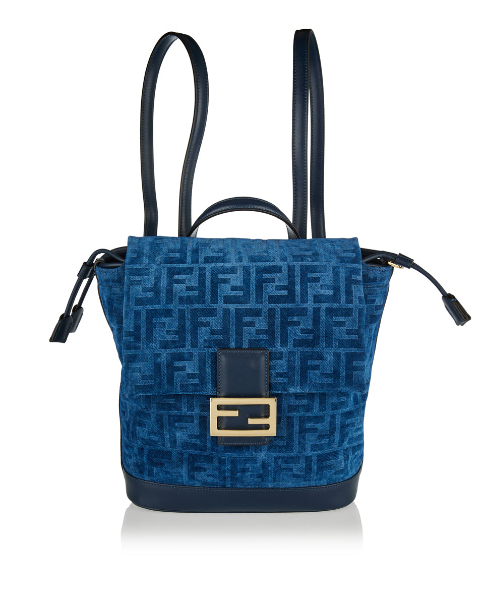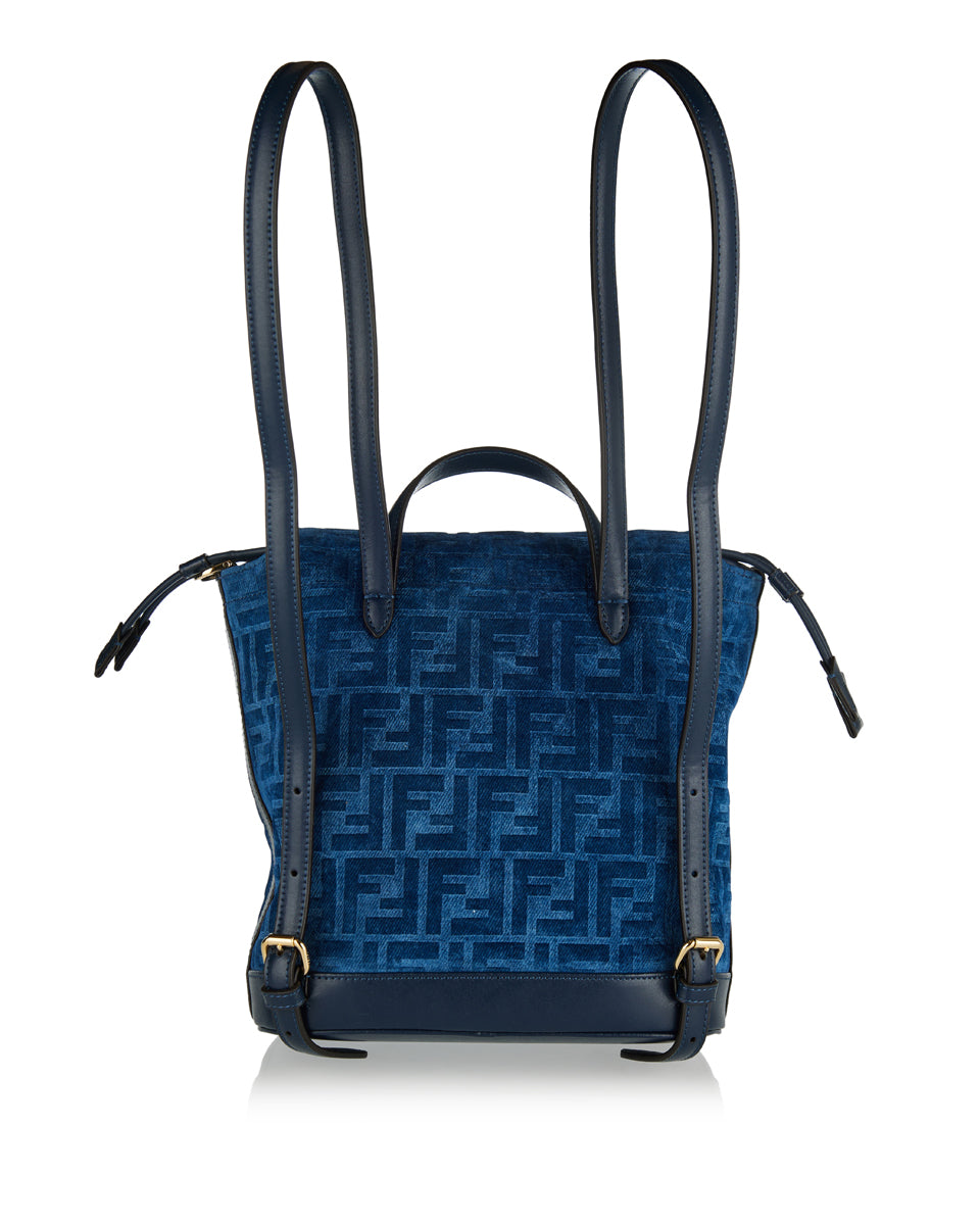 A sleek backpack crafted from jacquard fabric, defined by an all-over Fendi logo pattern and structured, contemporary silhouette.