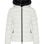 A contemporary short down jacket combining technical insulation with a structured, wearable silhouette.