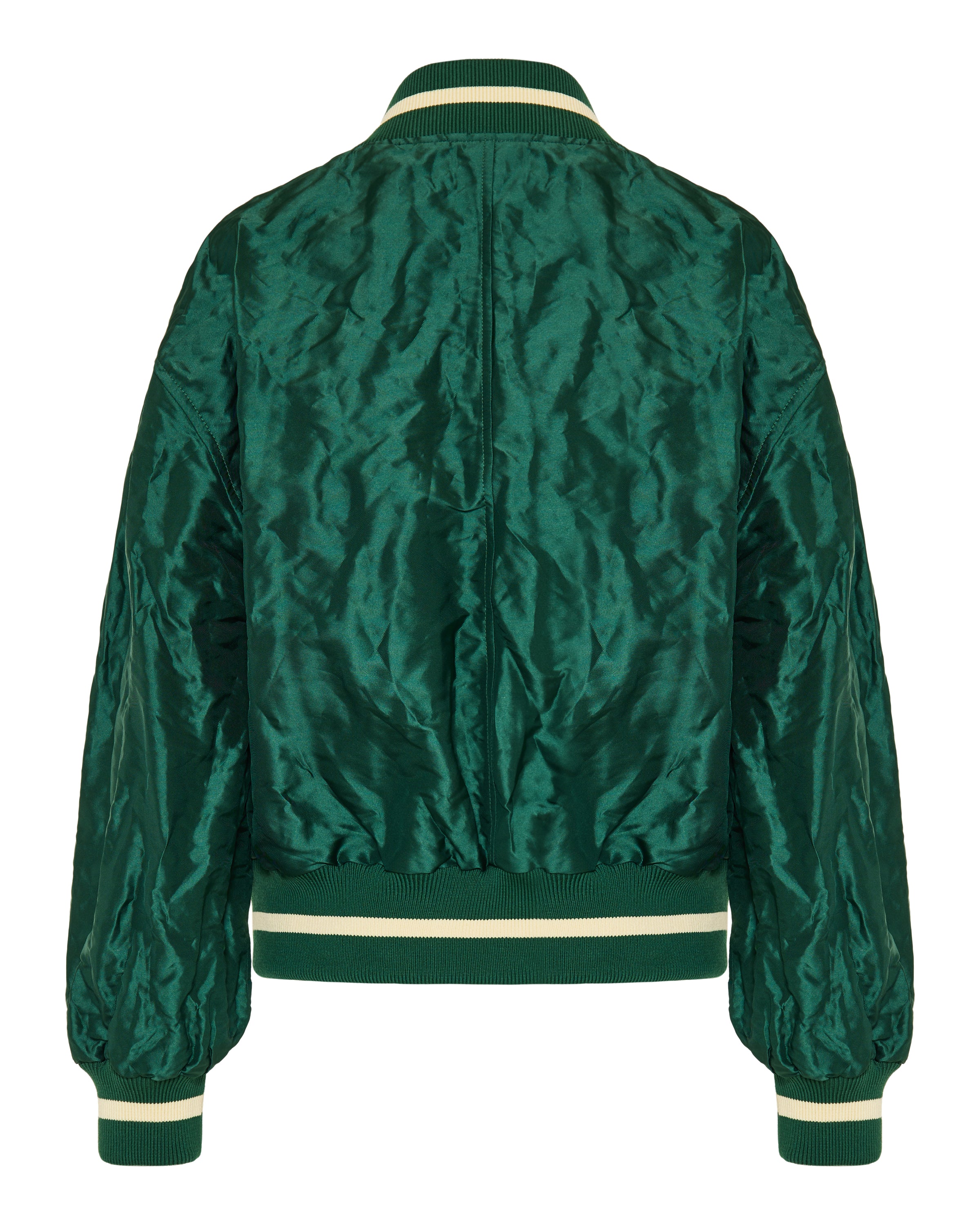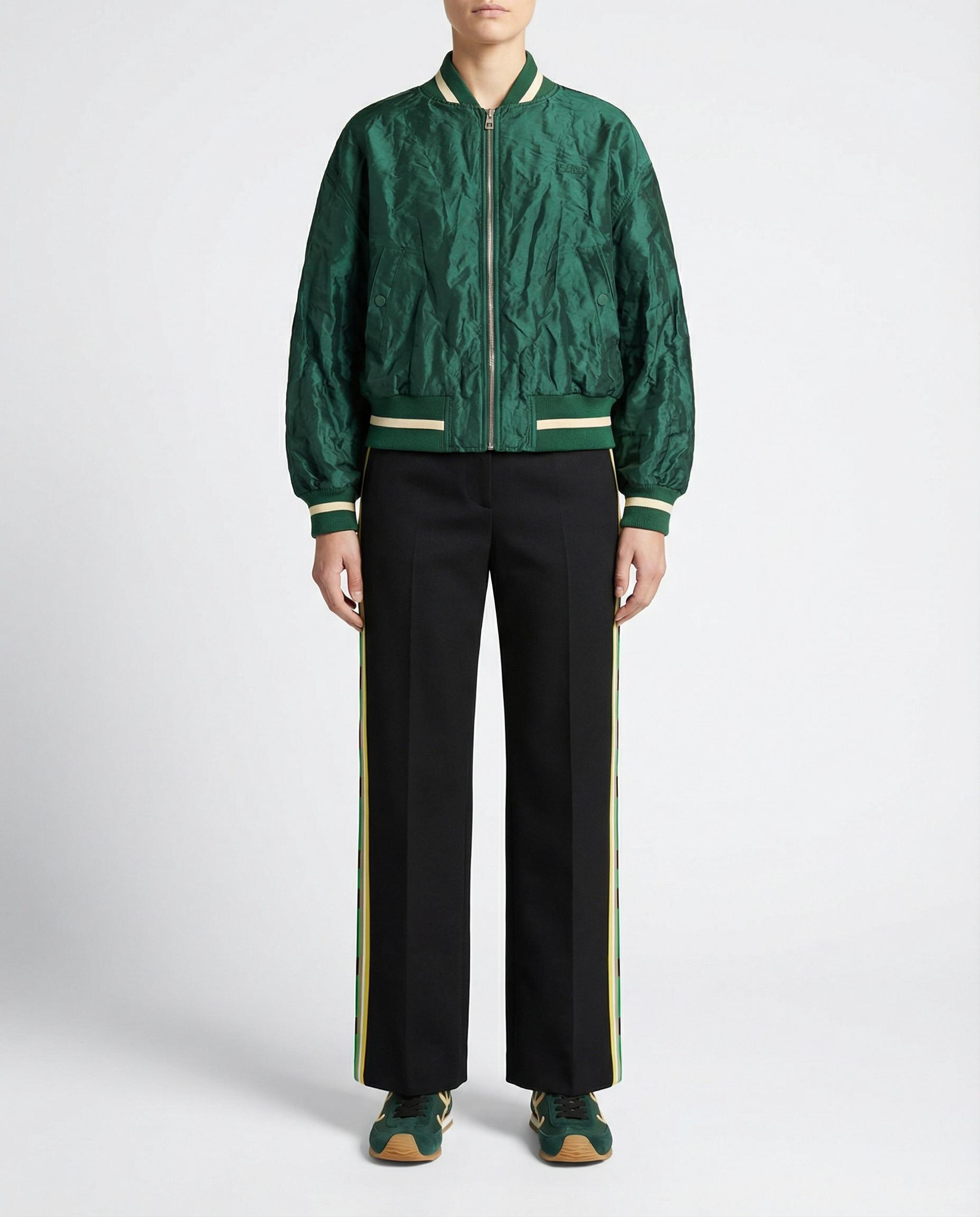 Contemporary bomber jacket crafted from lightweight technical fabric, defined by a clean silhouette and subtle volume for a modern, effortless statement.- Technical fabric construction