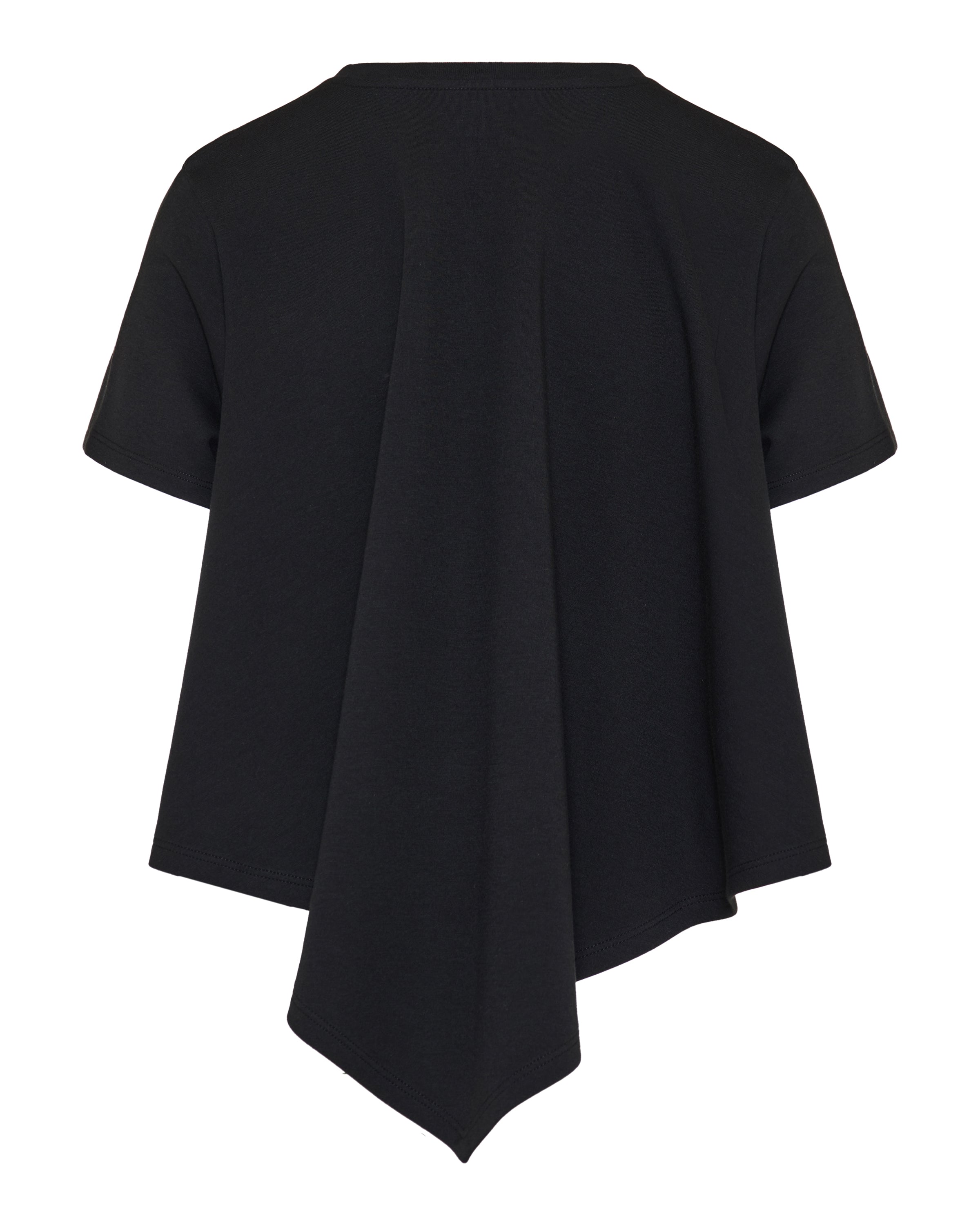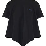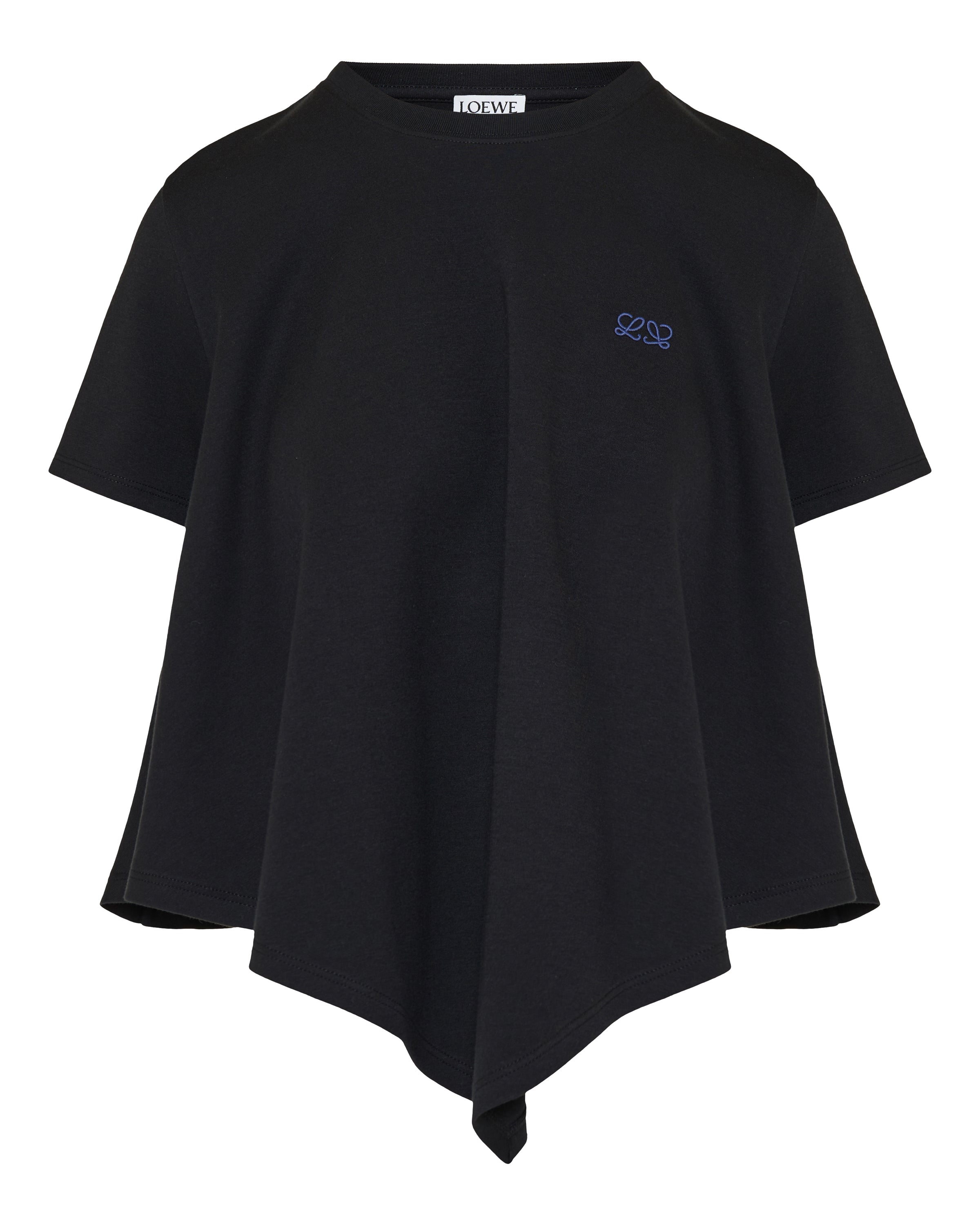 Short-sleeve T-shirt crafted from soft cotton blend jersey, defined by a fluid silhouette and an asymmetric pointed hem. Finished with a subtle embroidered Anagram at the chest for a refined signature touch.- Round neckline