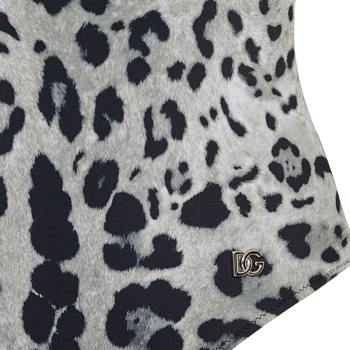 Bold and sophisticated, this Dolce & Gabbana one-piece swimsuit features a striking leopard print with a sleek racing silhouette. Perfect for making a statement by the water.