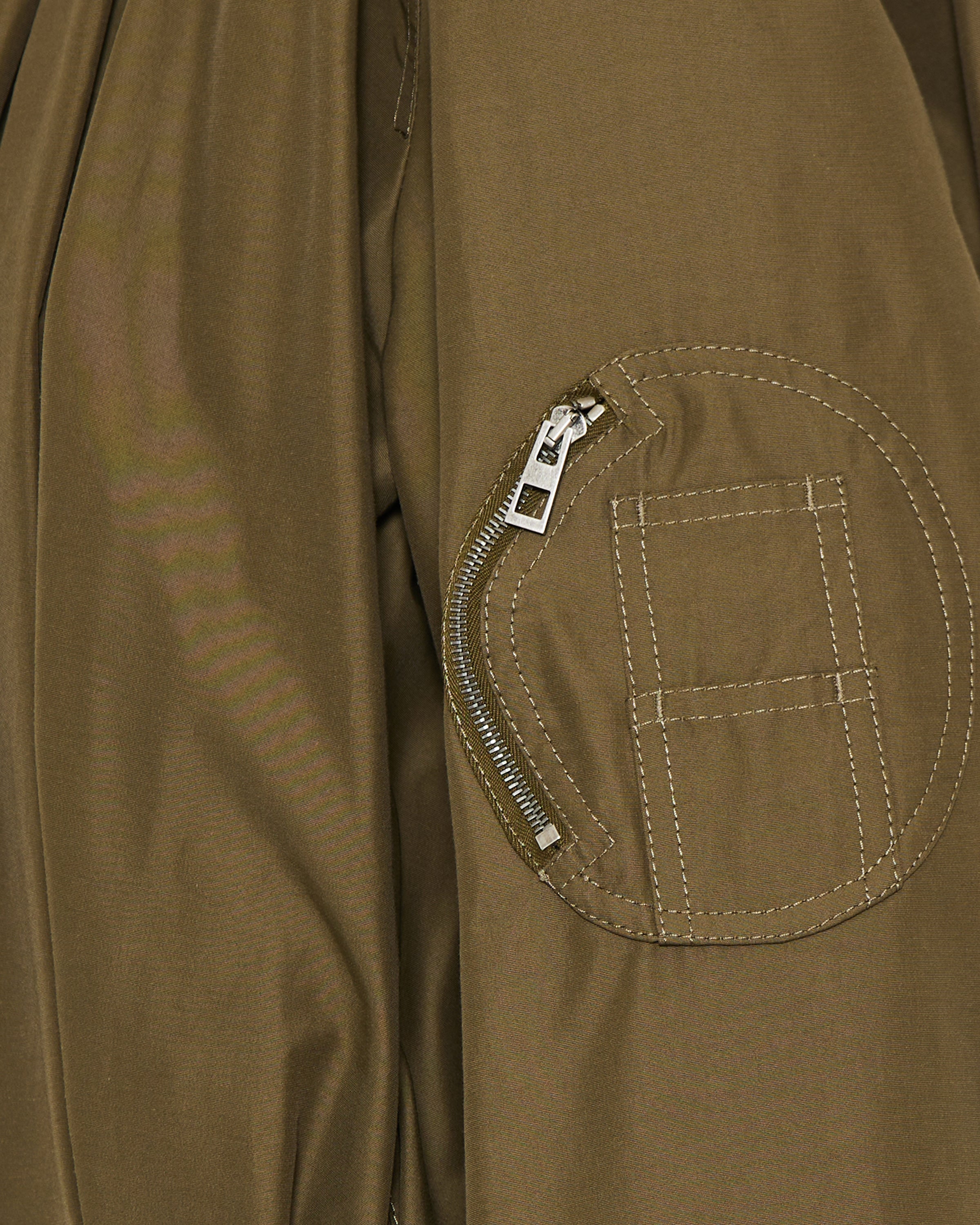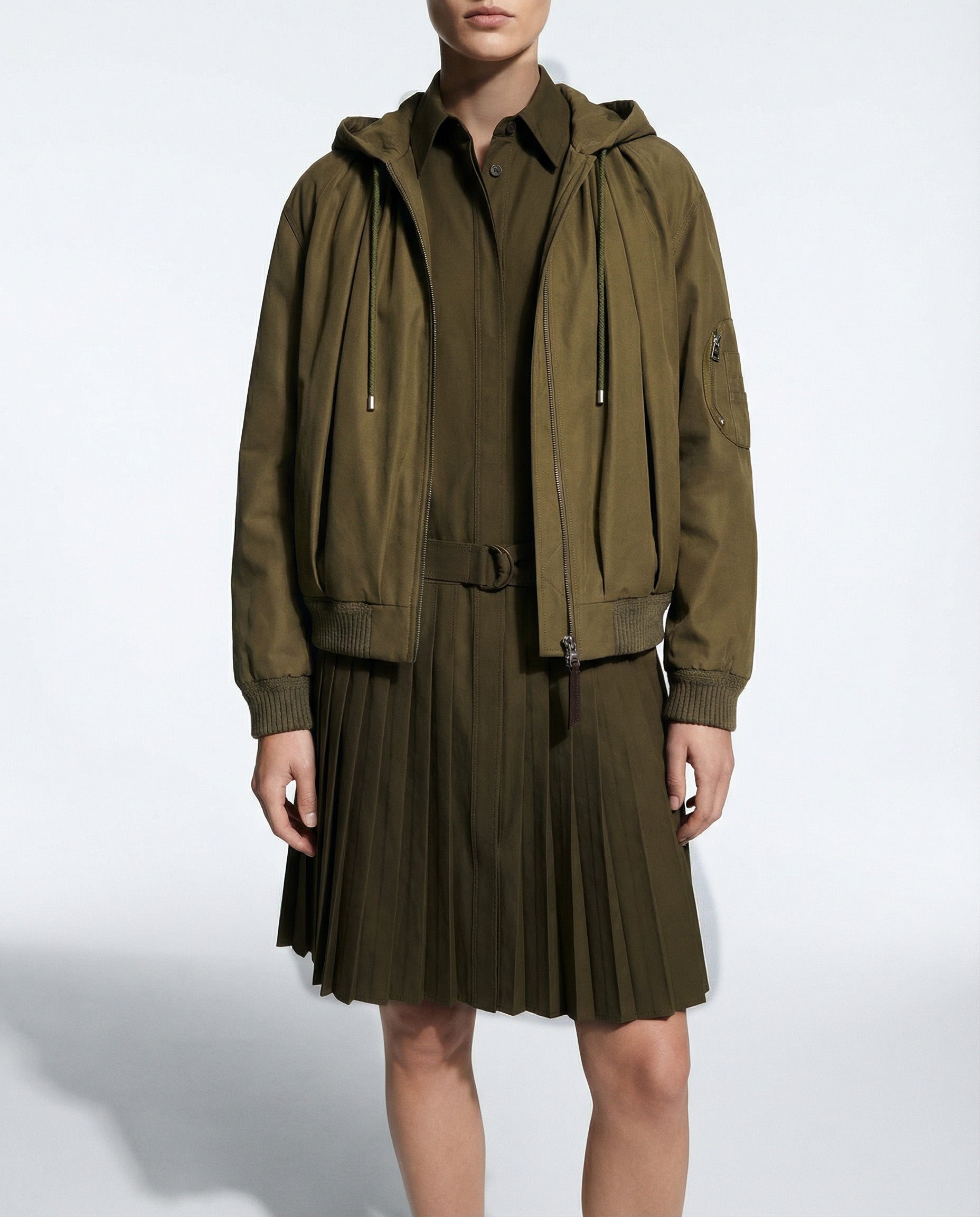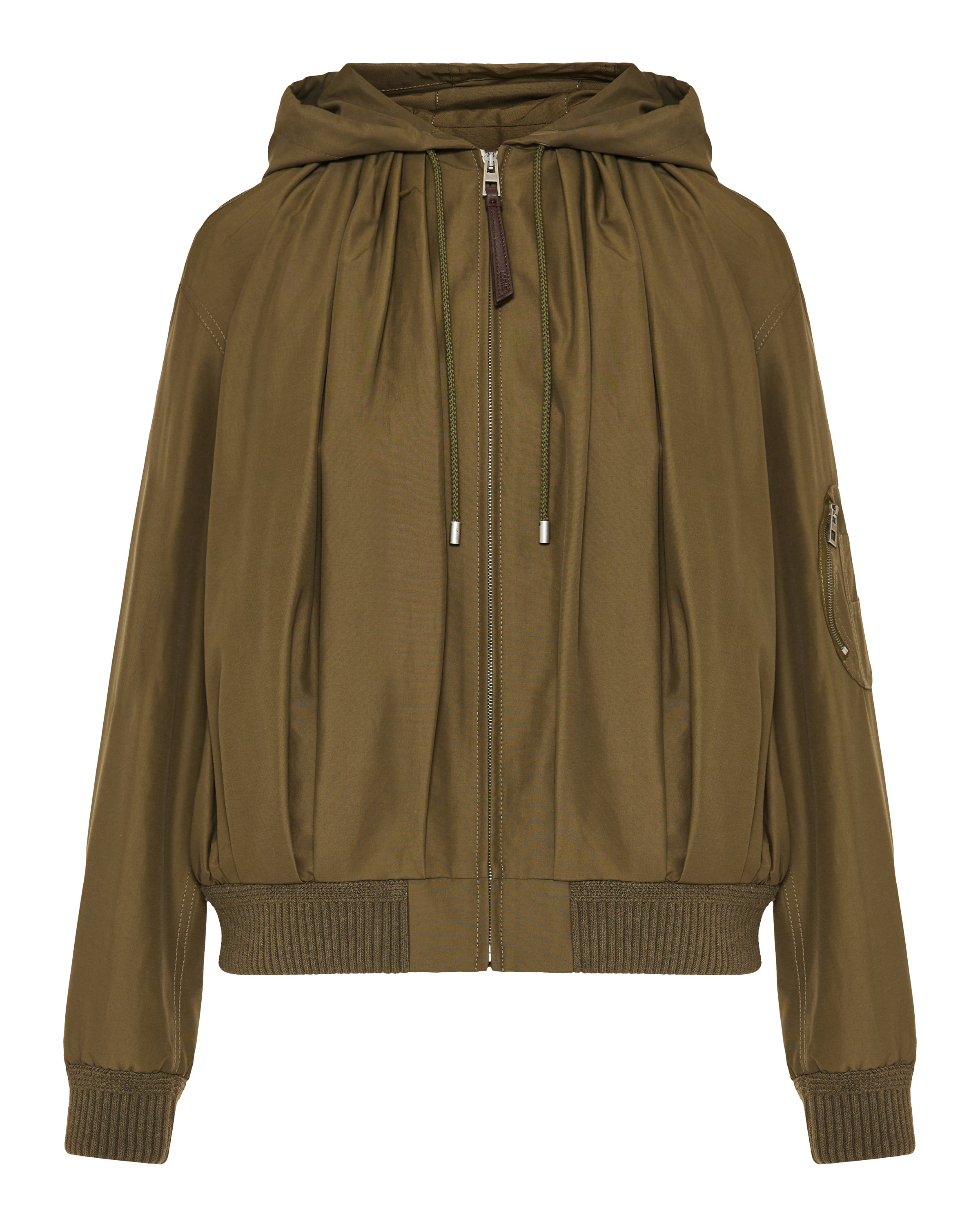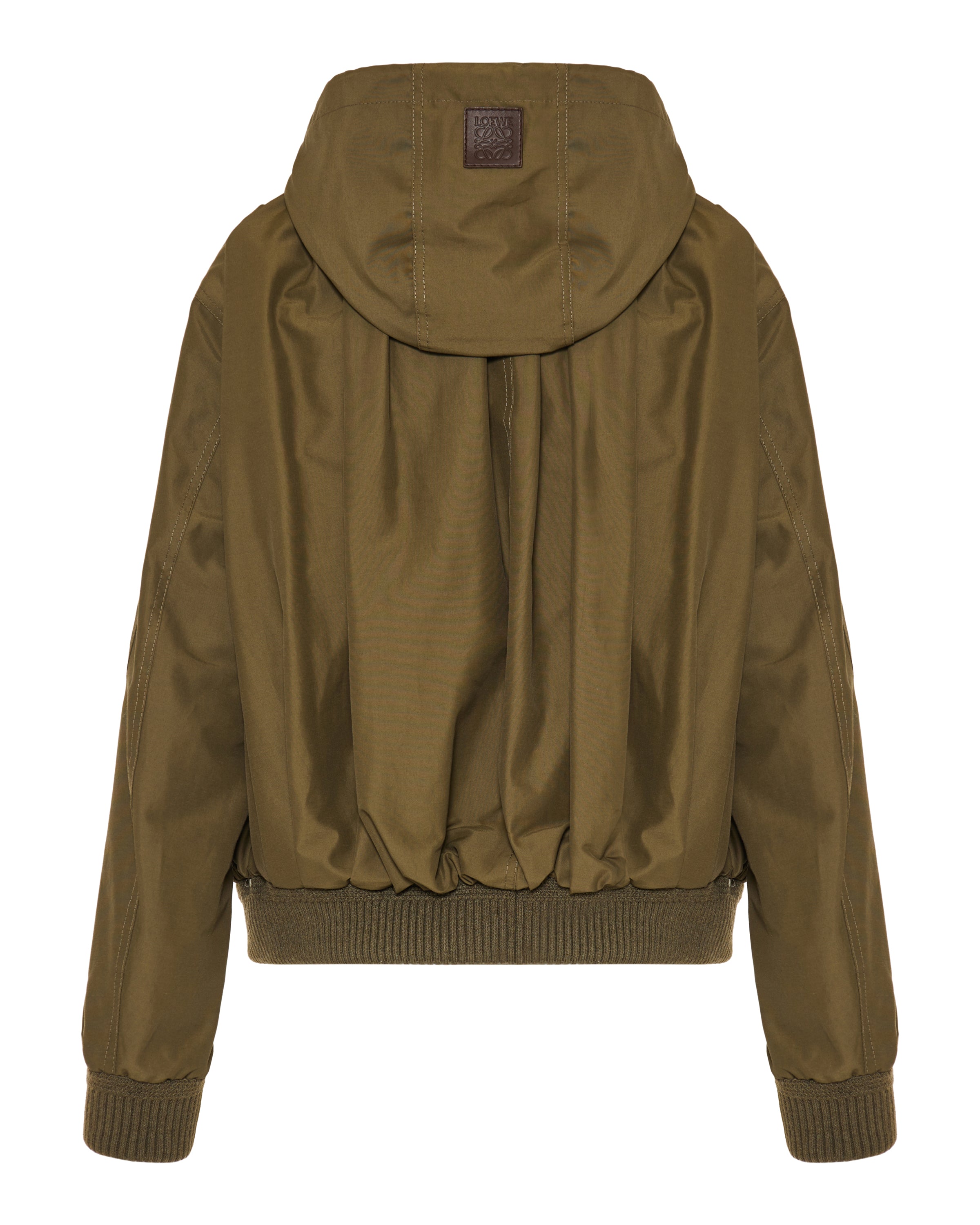 Lightweight jacket crafted from a structured cotton-blend fabric, designed with a relaxed silhouette and functional hood for a contemporary, effortless layer.- Cotton-blend fabric