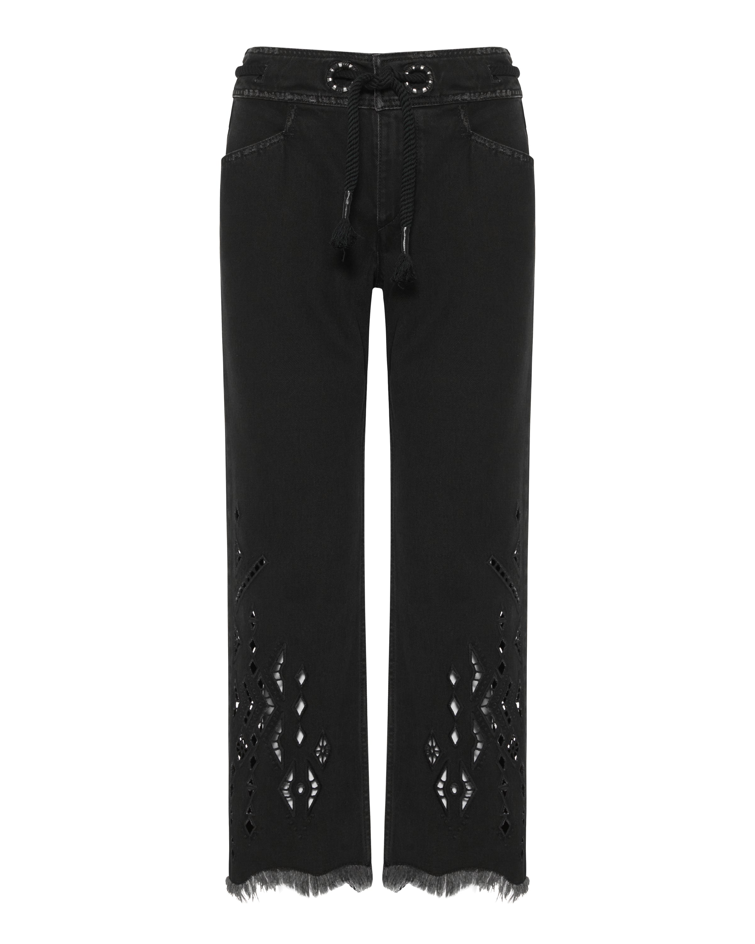A tailored straight-leg silhouette crafted in structured fabric, featuring a mid-rise waist and clean, architectural lines for a polished finish.
