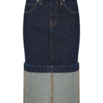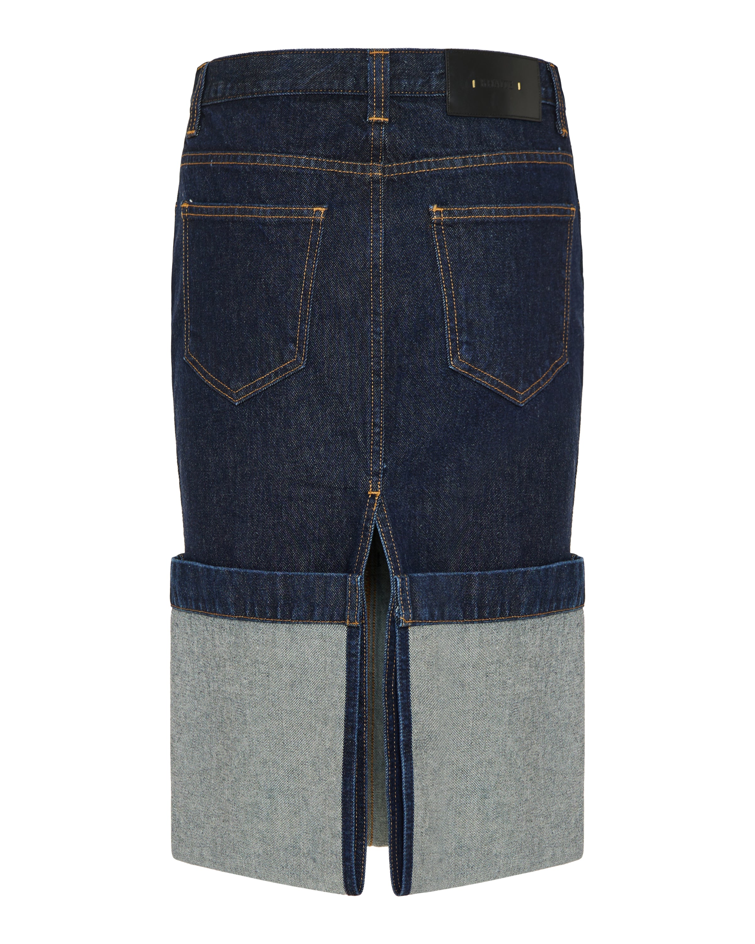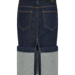 Midi skirt crafted from structured denim, designed with a streamlined silhouette that highlights clean lines and modern proportion. A refined essential that elevates everyday styling with understated sophistication.- Cotton denim