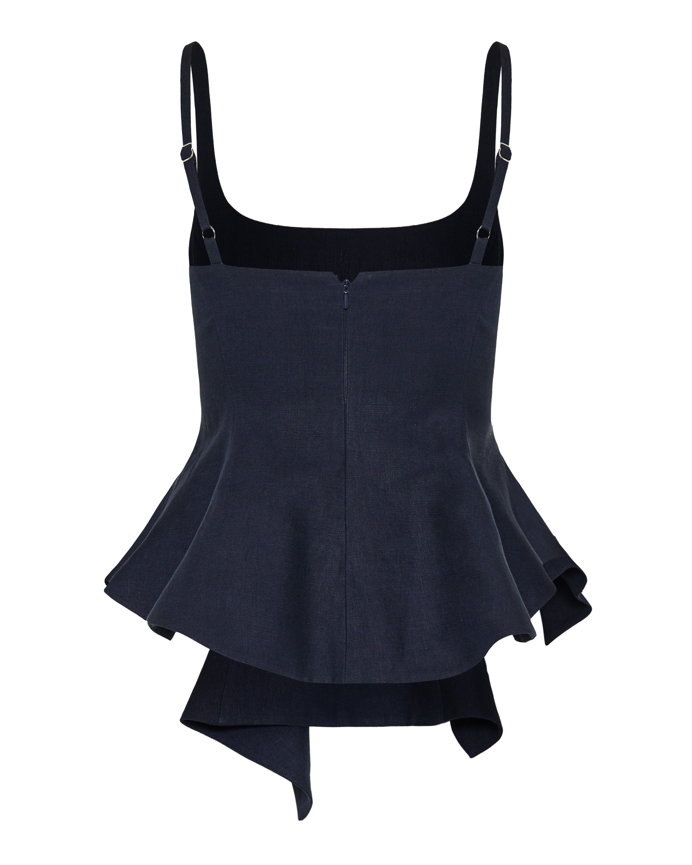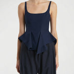 Sleeveless top crafted in a structured knit, designed with a clean neckline and streamlined silhouette. Rendered in a deep marine hue, it delivers understated sophistication with modern precision.- Structured knit fabric