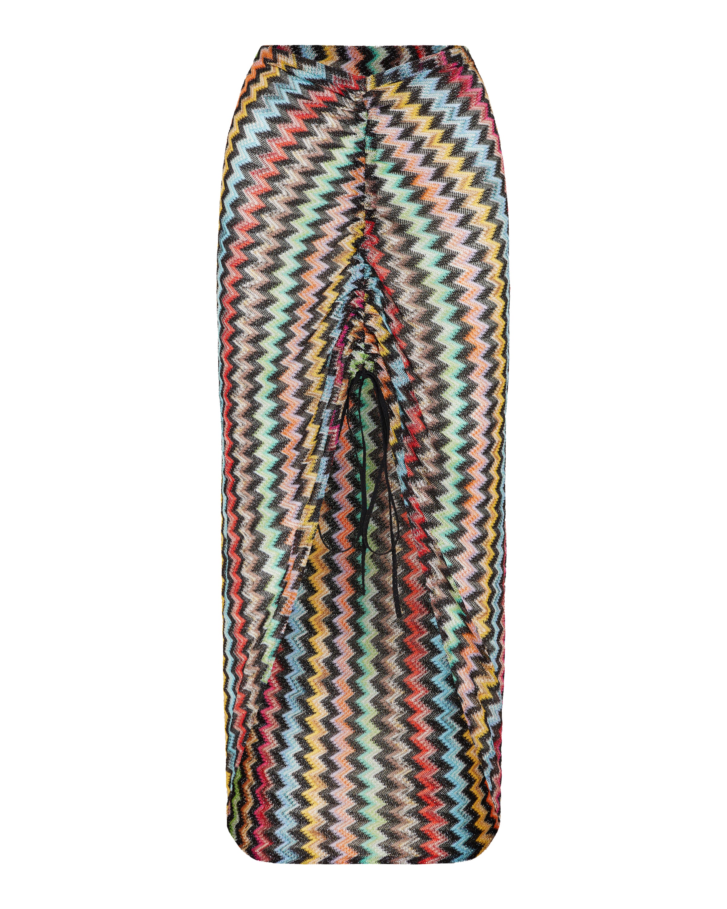 A fluid, body-skimming silhouette defined by Missoni’s signature micro zigzag motif, enhanced with soft ruching for added texture and movement.