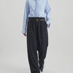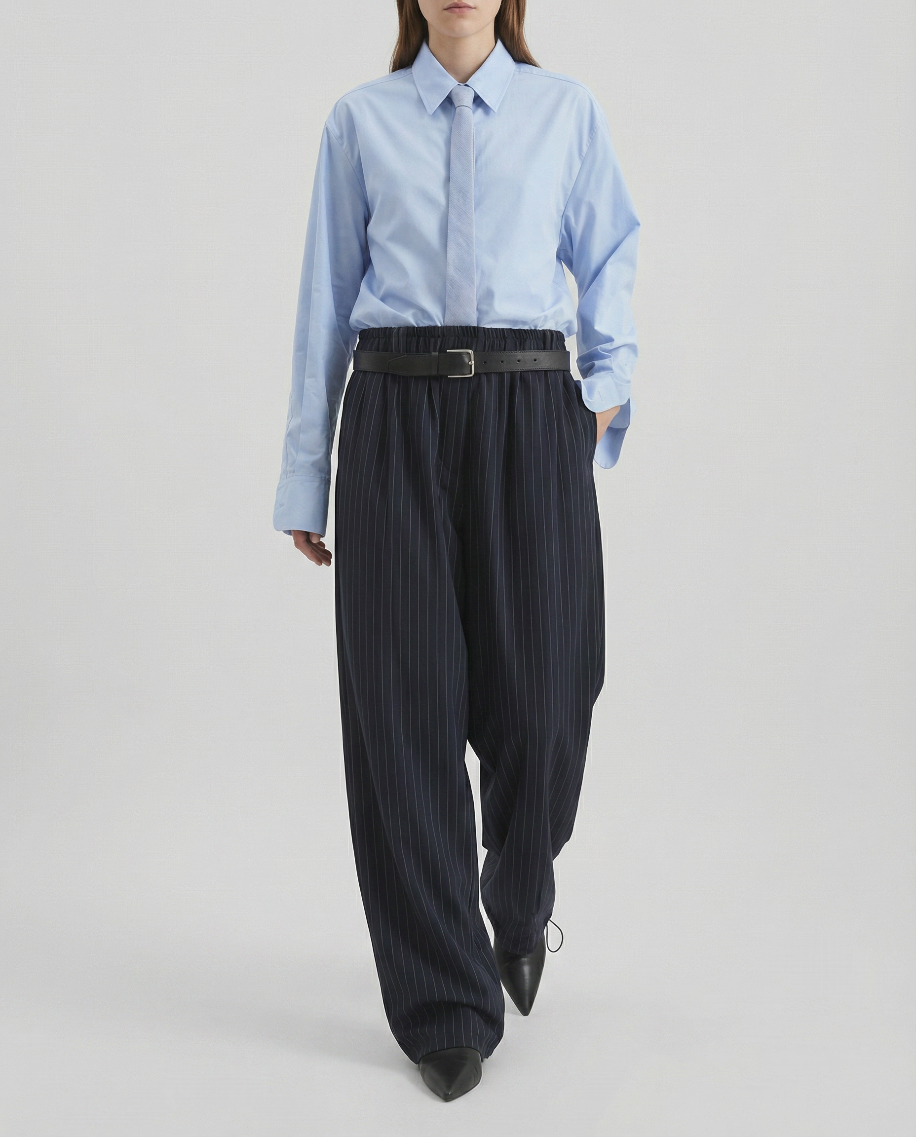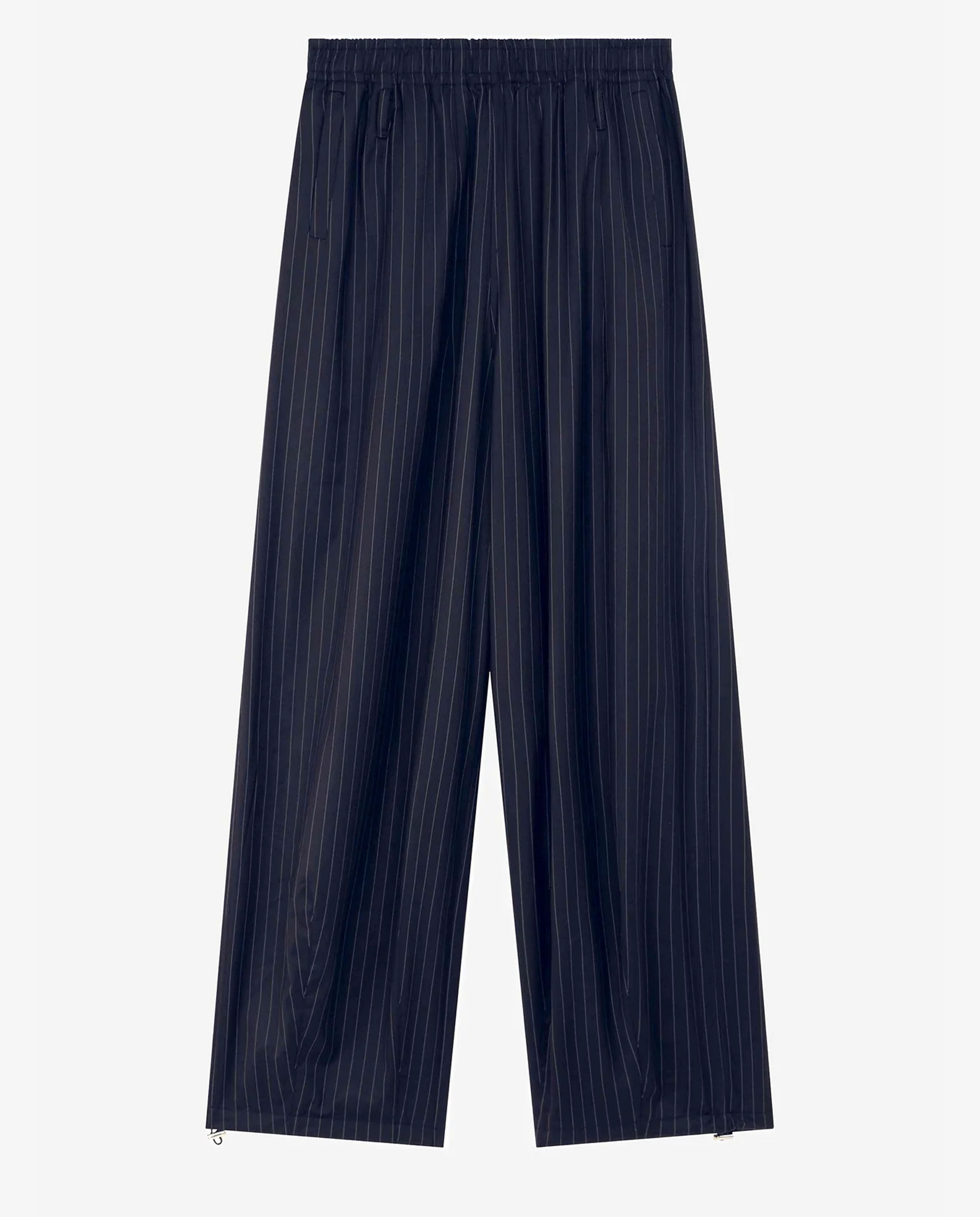 A tailored take on relaxed dressing, blending track-inspired ease with refined pinstripe detailing for a modern, elevated silhouette.