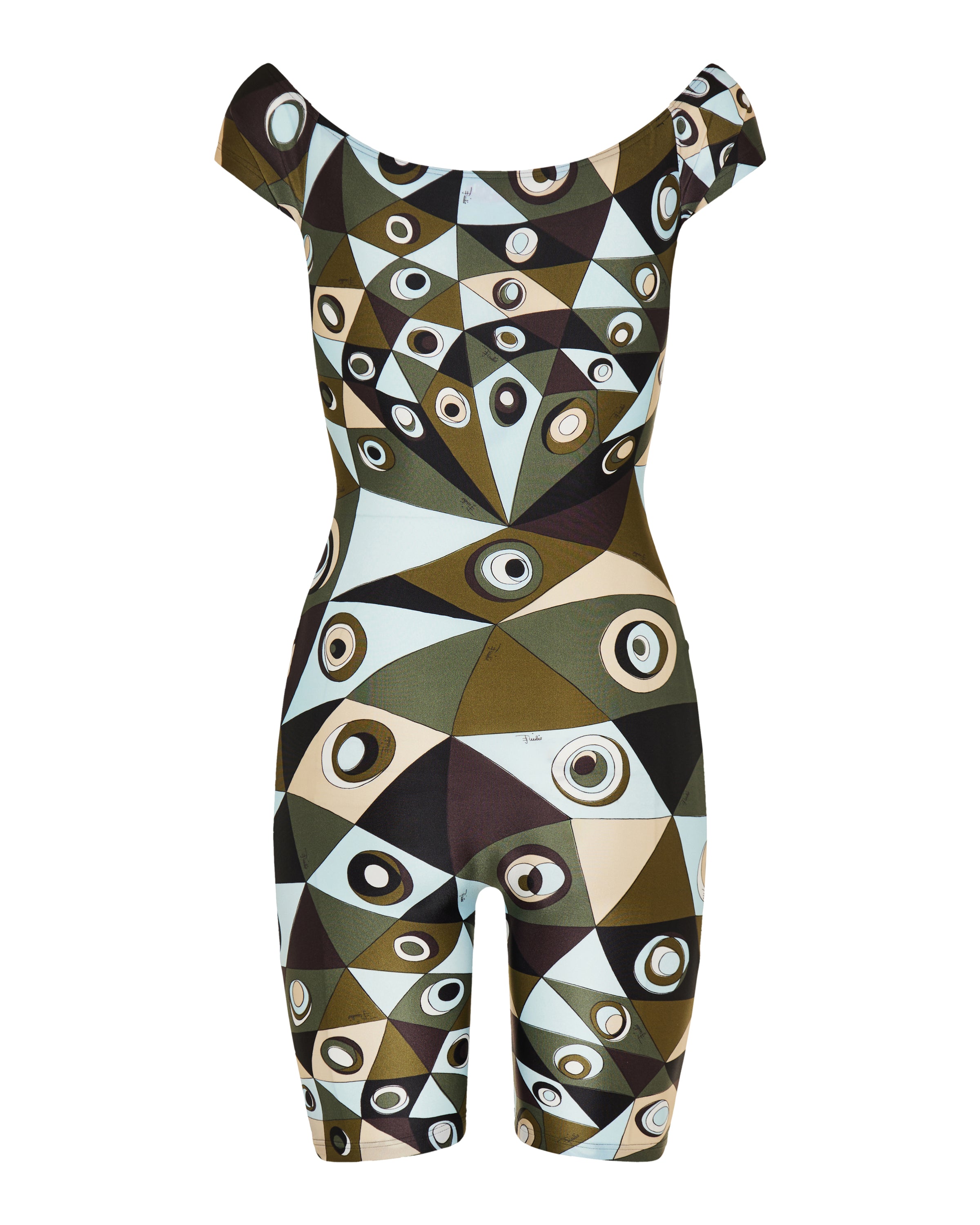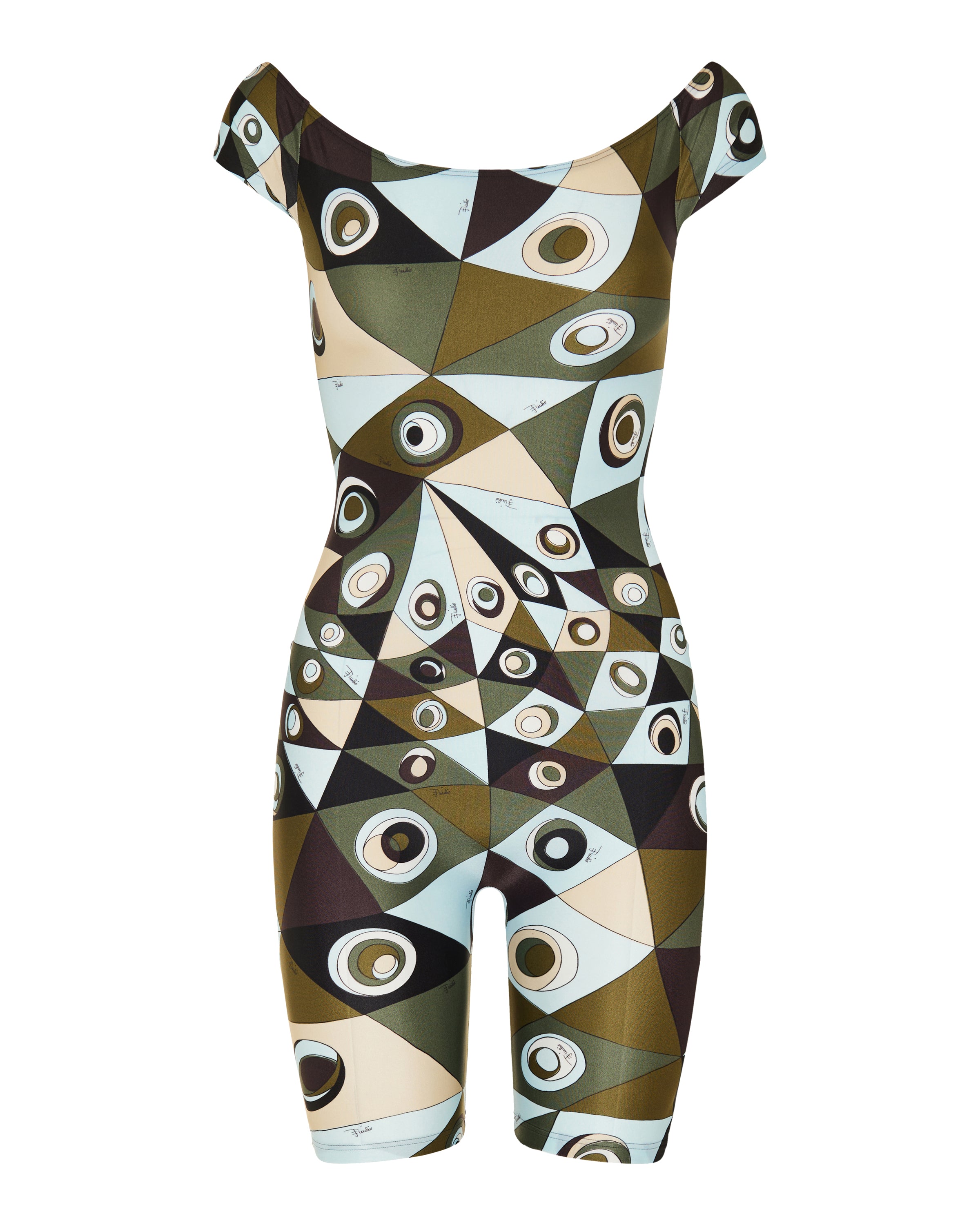 A fluid jumpsuit in silk, defined by an off-shoulder neckline and relaxed, elongated silhouette.