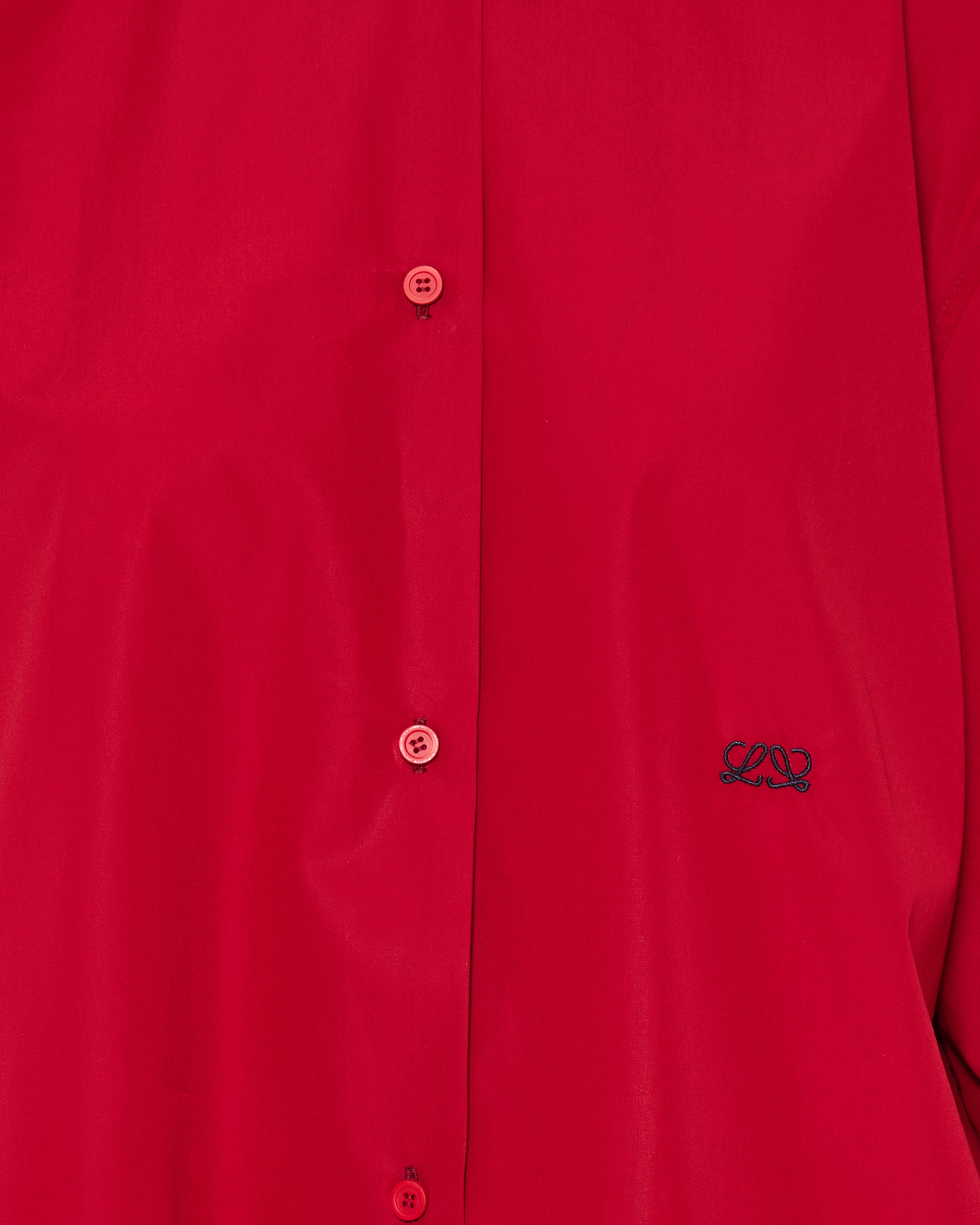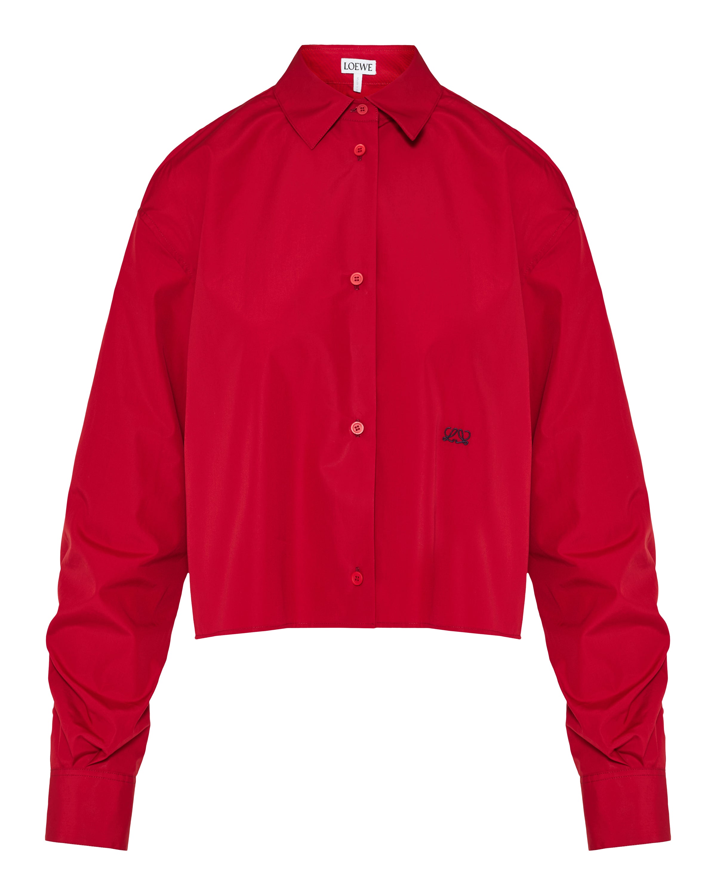 Long-sleeve shirt tailored in a crisp cotton blend, defined by a slightly cropped silhouette and relaxed proportions. Finished with tonal buttons and a delicate embroidered Anagram at the front for a subtle signature accent.- Classic pointed collar