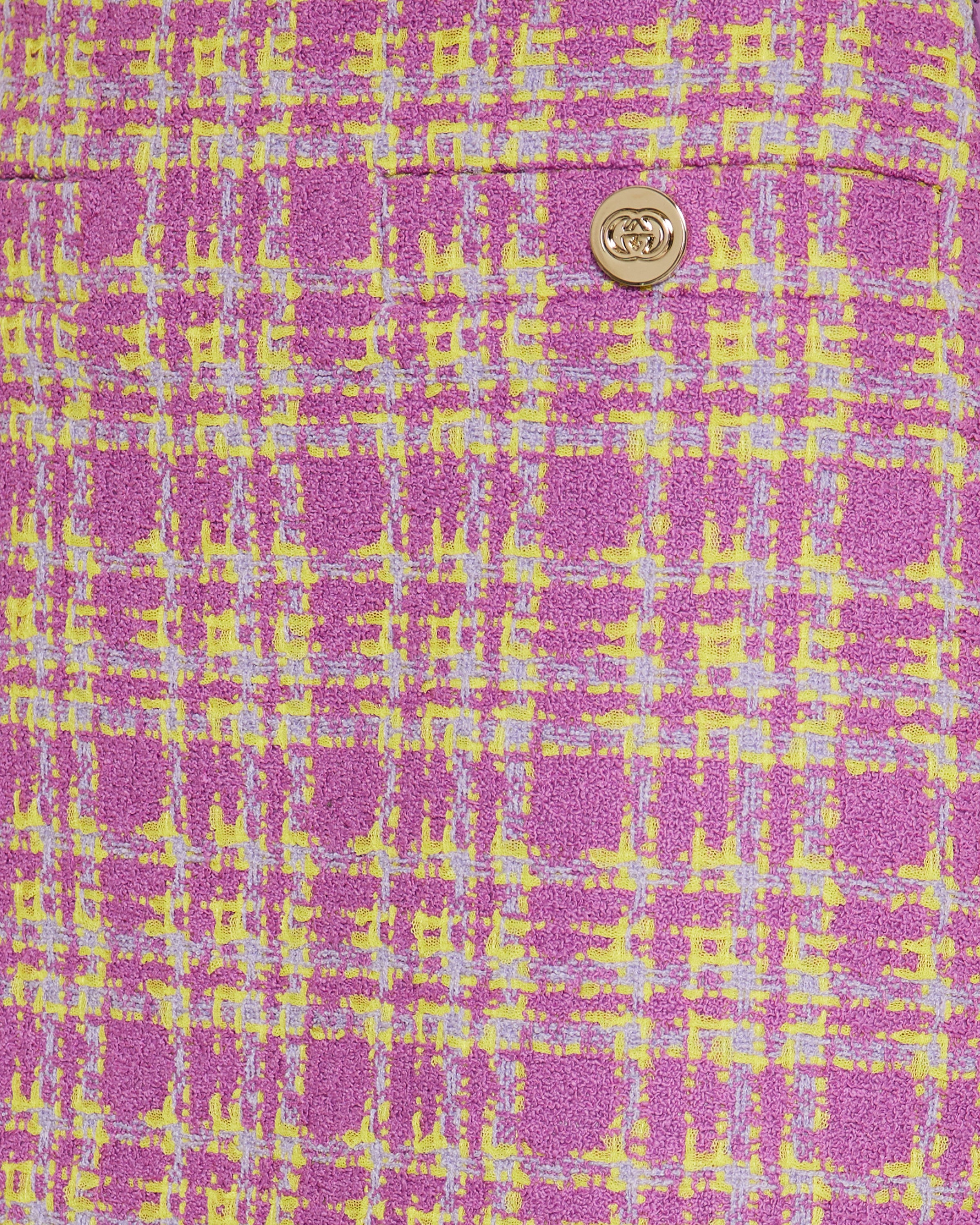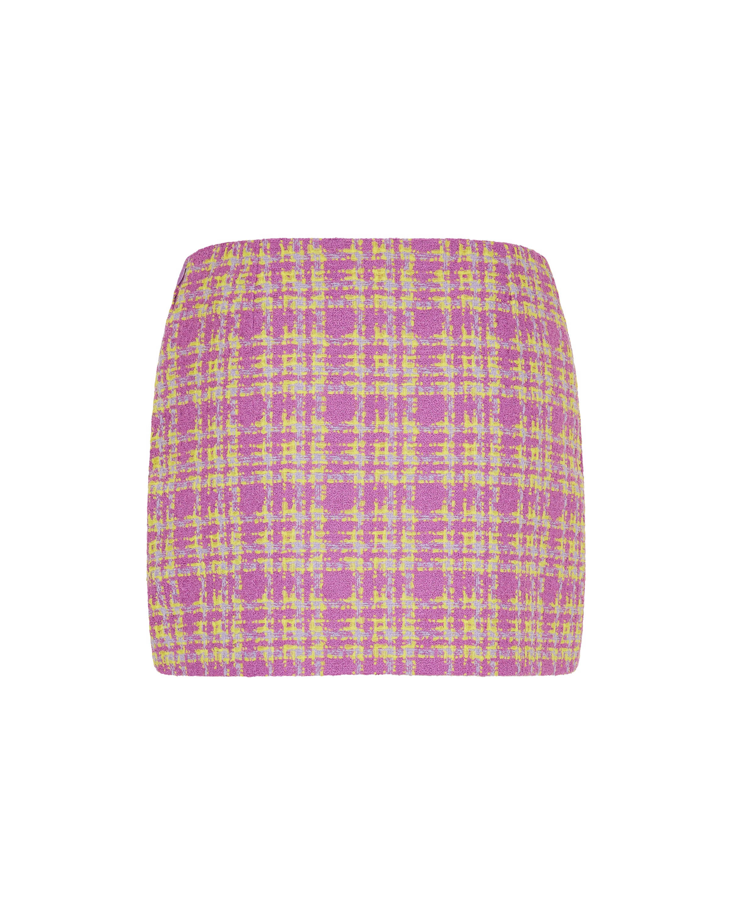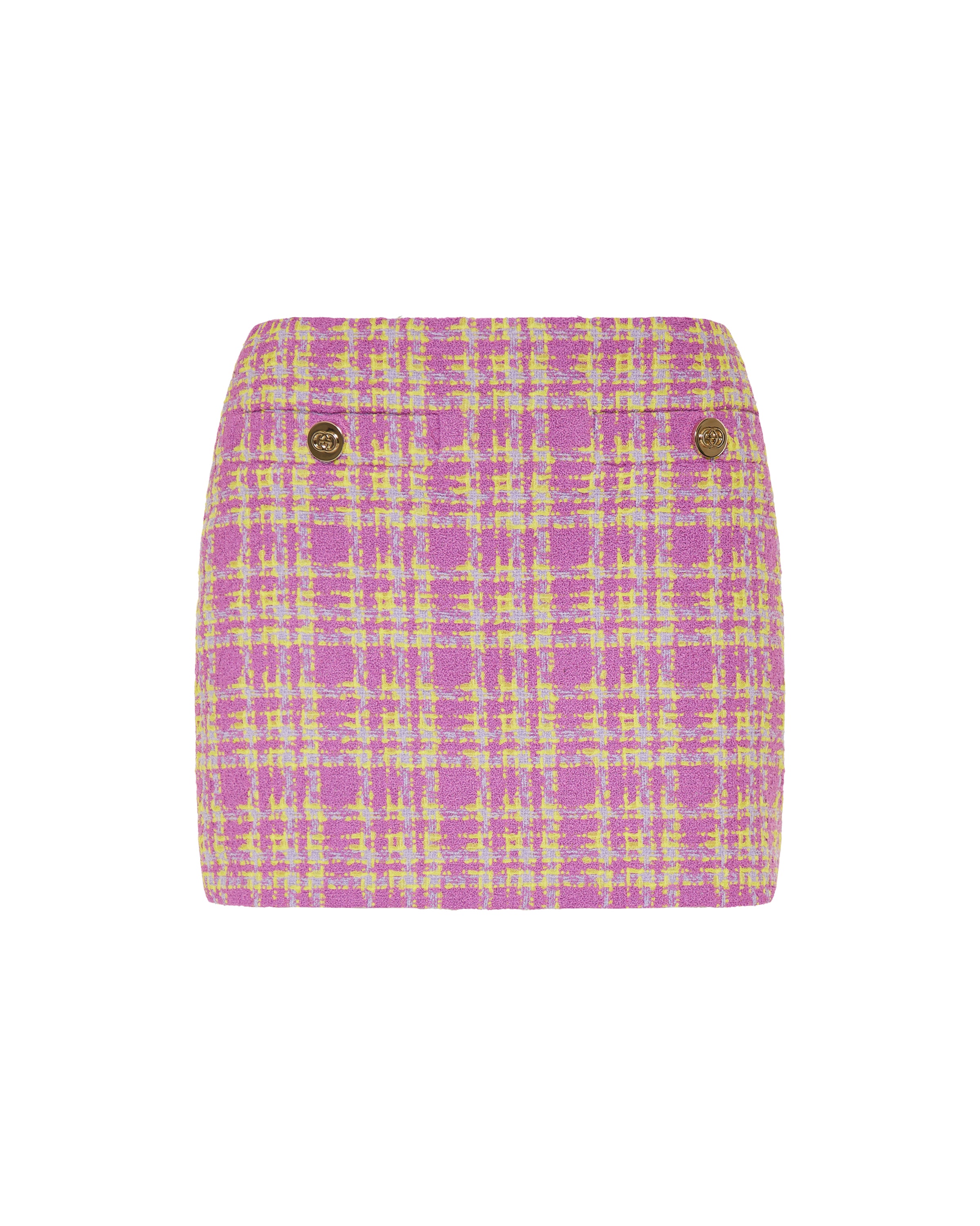 Structured skirt crafted in textured tweed, defined by polished button detailing that enhances its tailored silhouette. A refined piece that blends heritage craftsmanship with modern femininity.- Textured tweed fabric