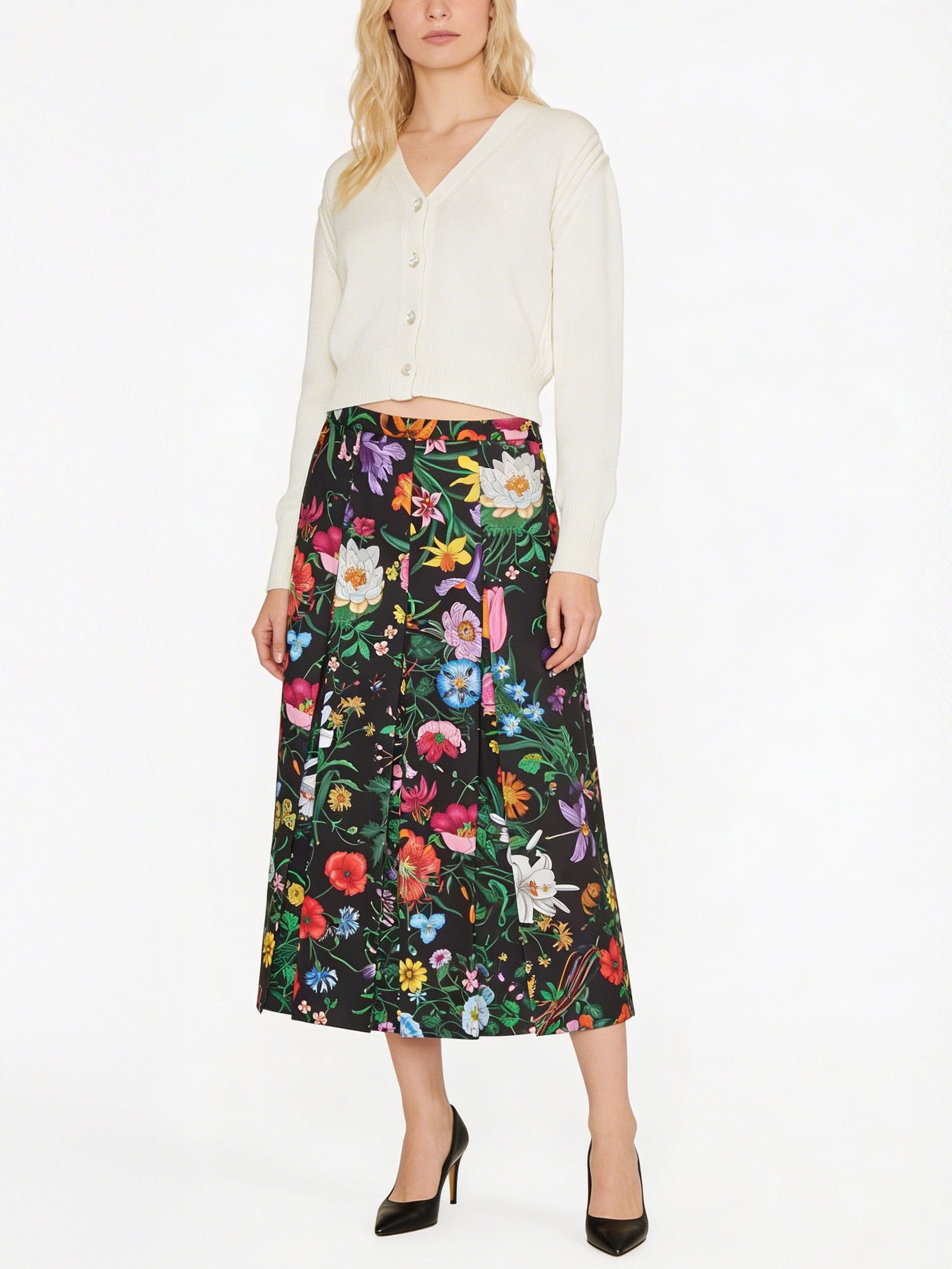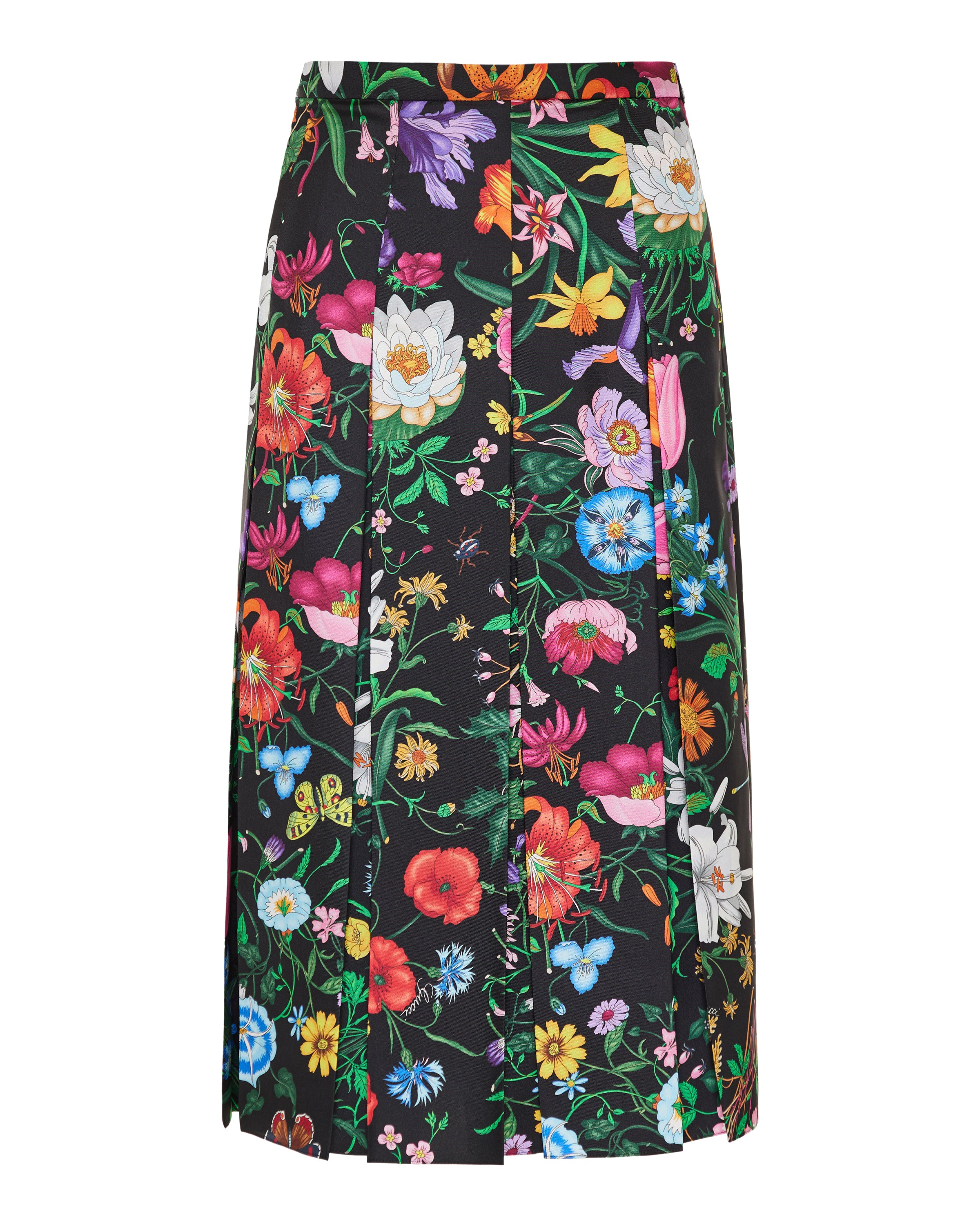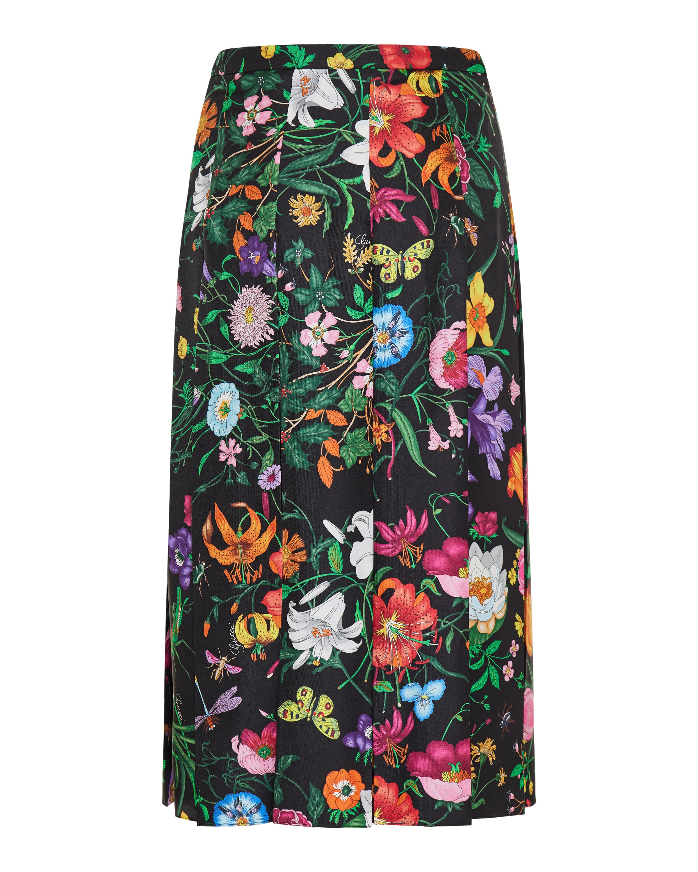 GUCCI Floral silk pleated midi skirt