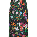 leated midi skirt crafted in fluid silk twill, enriched with an all-over print that enhances its dynamic movement. A refined silhouette designed to bring color and elegance to both everyday and occasion styling.- Silk twill fabric