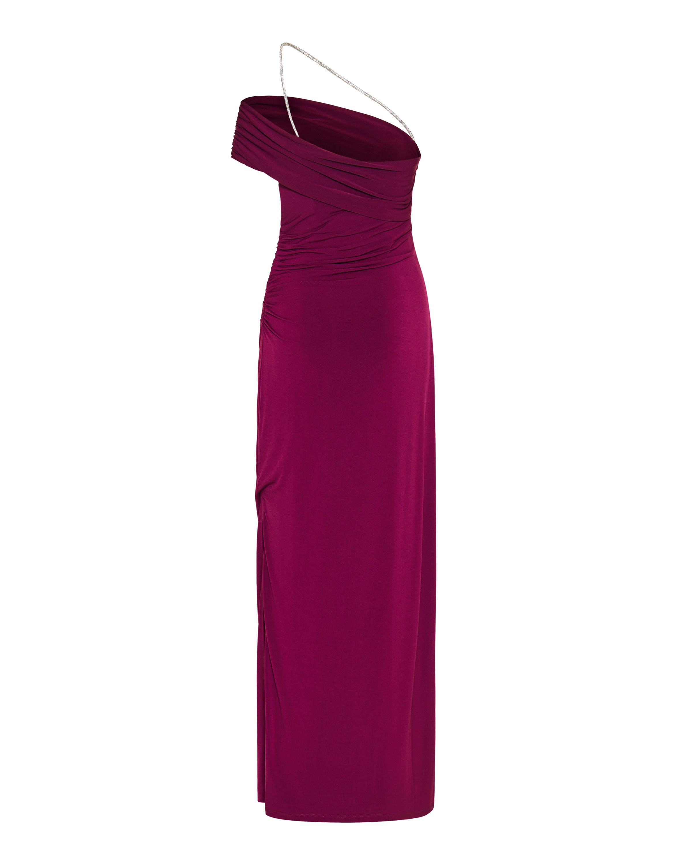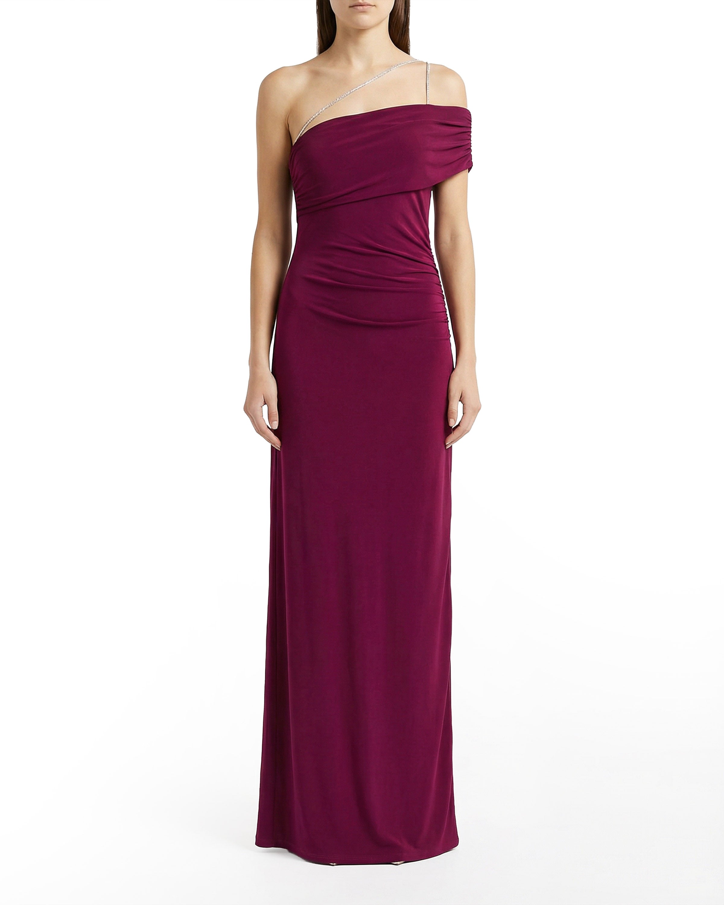 A thistle-hued evening gown featuring Hervé Léger’s signature bandage construction for a sculpted, figure-enhancing fit. Ideal for formal events and red-carpet occasions, the gown combines sleek tailoring with contemporary glamour. Its floor-length silhouette and refined finish create a sophisticated statement piece for elevated eveningwear.
