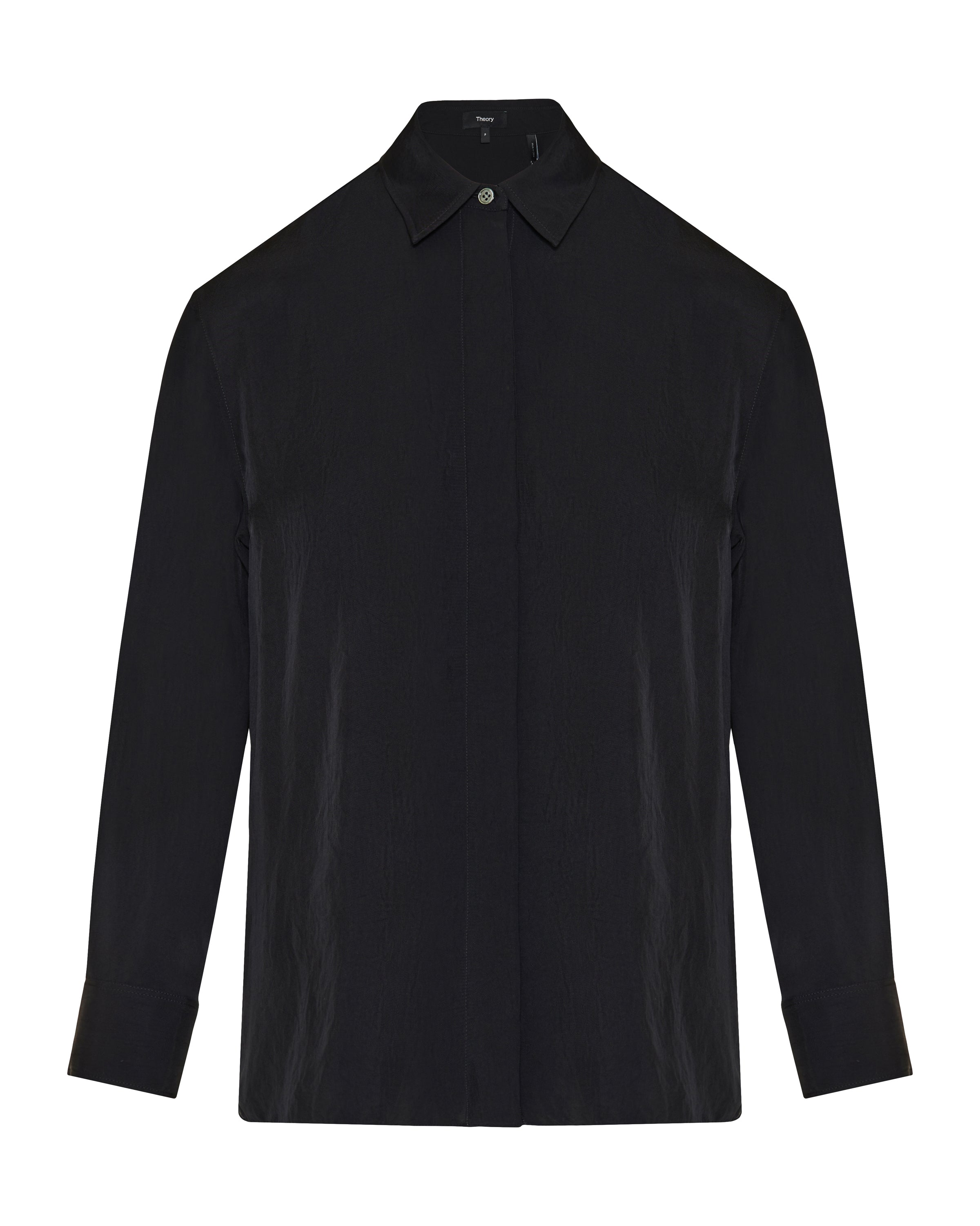 - Classic pointed collar with front button fastening