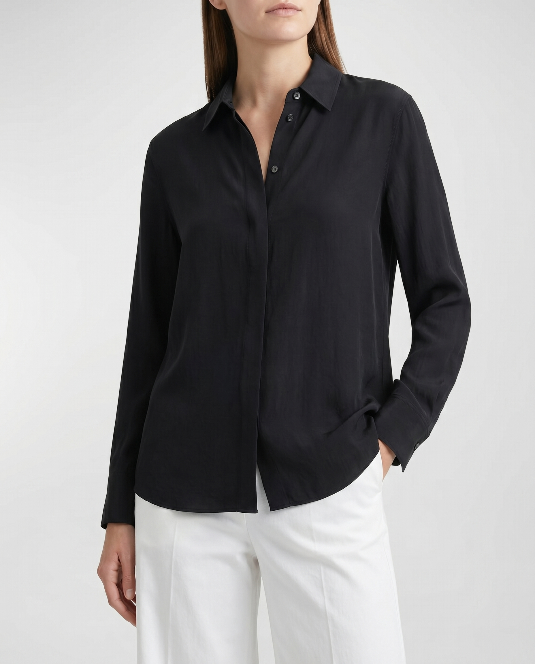 - Long sleeves with buttoned cuffs