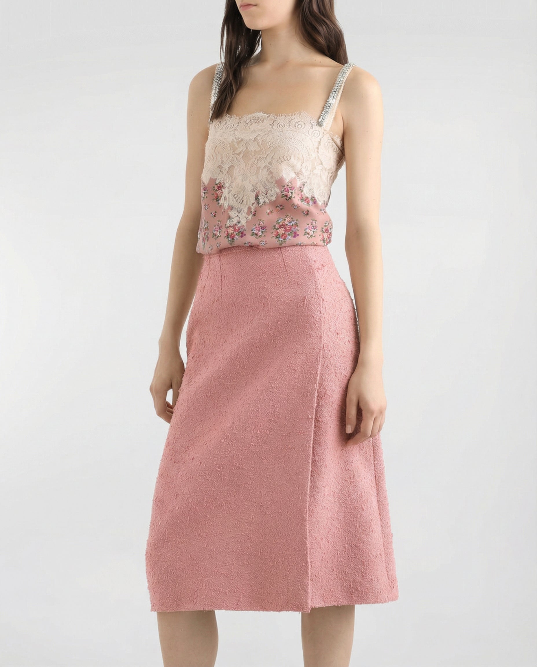 Elegant charmeuse top crafted with a fluid drape and luminous finish, enriched with a delicate small flower bouquet print. A refined silhouette that moves effortlessly from daywear to evening styling.- Silk charmeuse