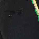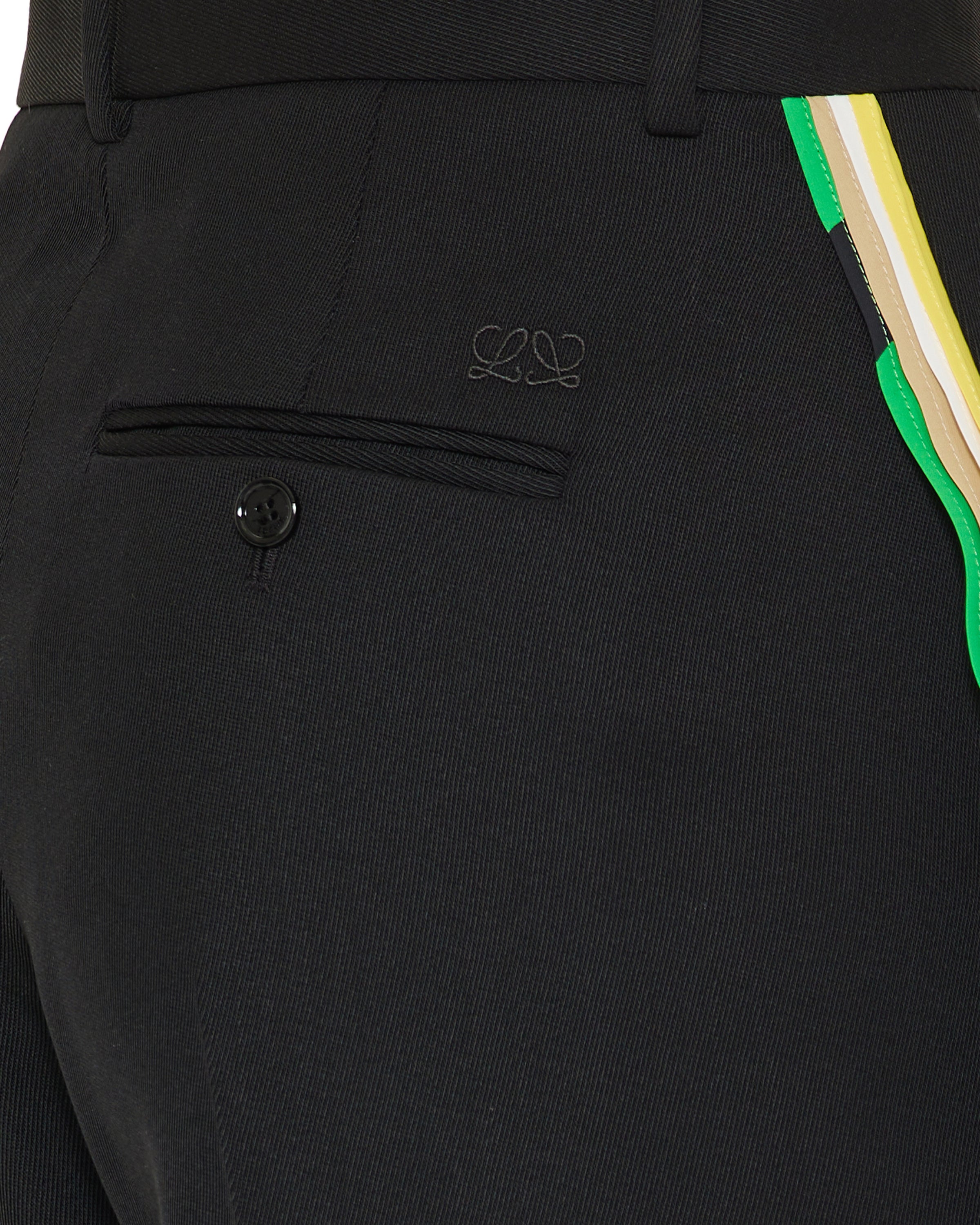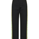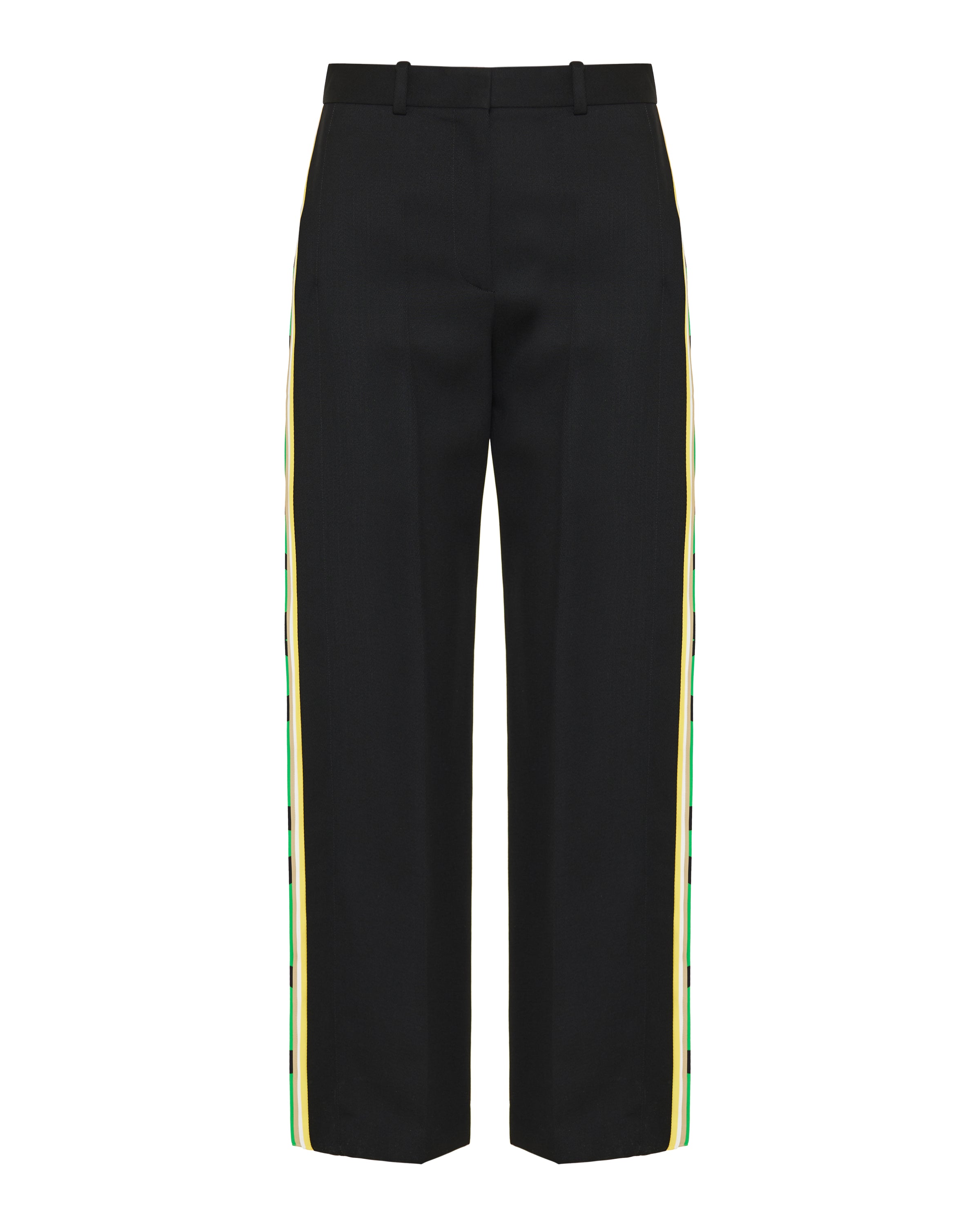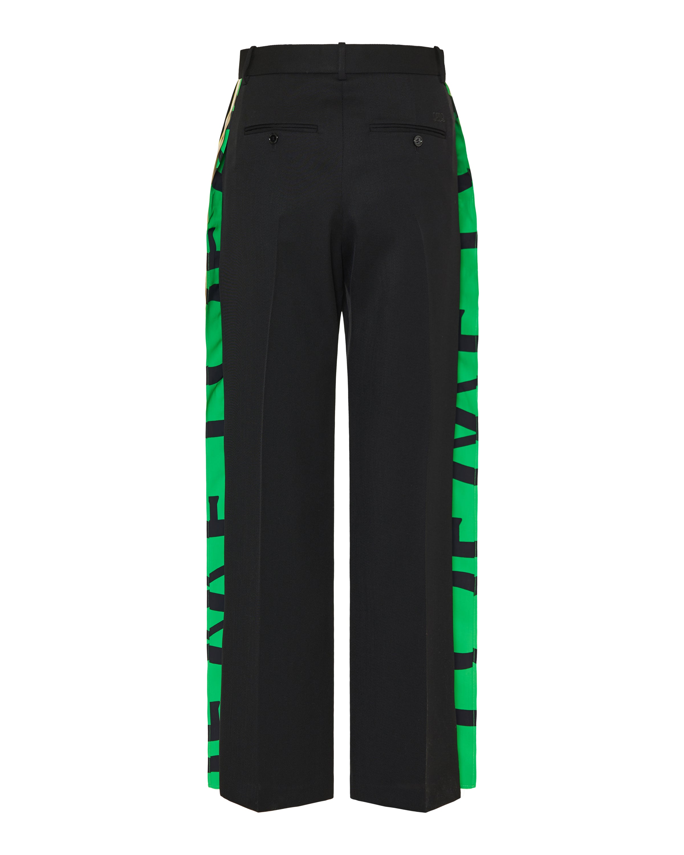 Tailored trousers cut in a structured silhouette, elevated by bold logo side panels in contrasting tones. A refined essential with a graphic twist that balances classic tailoring and statement detailing.- Mid-rise waist