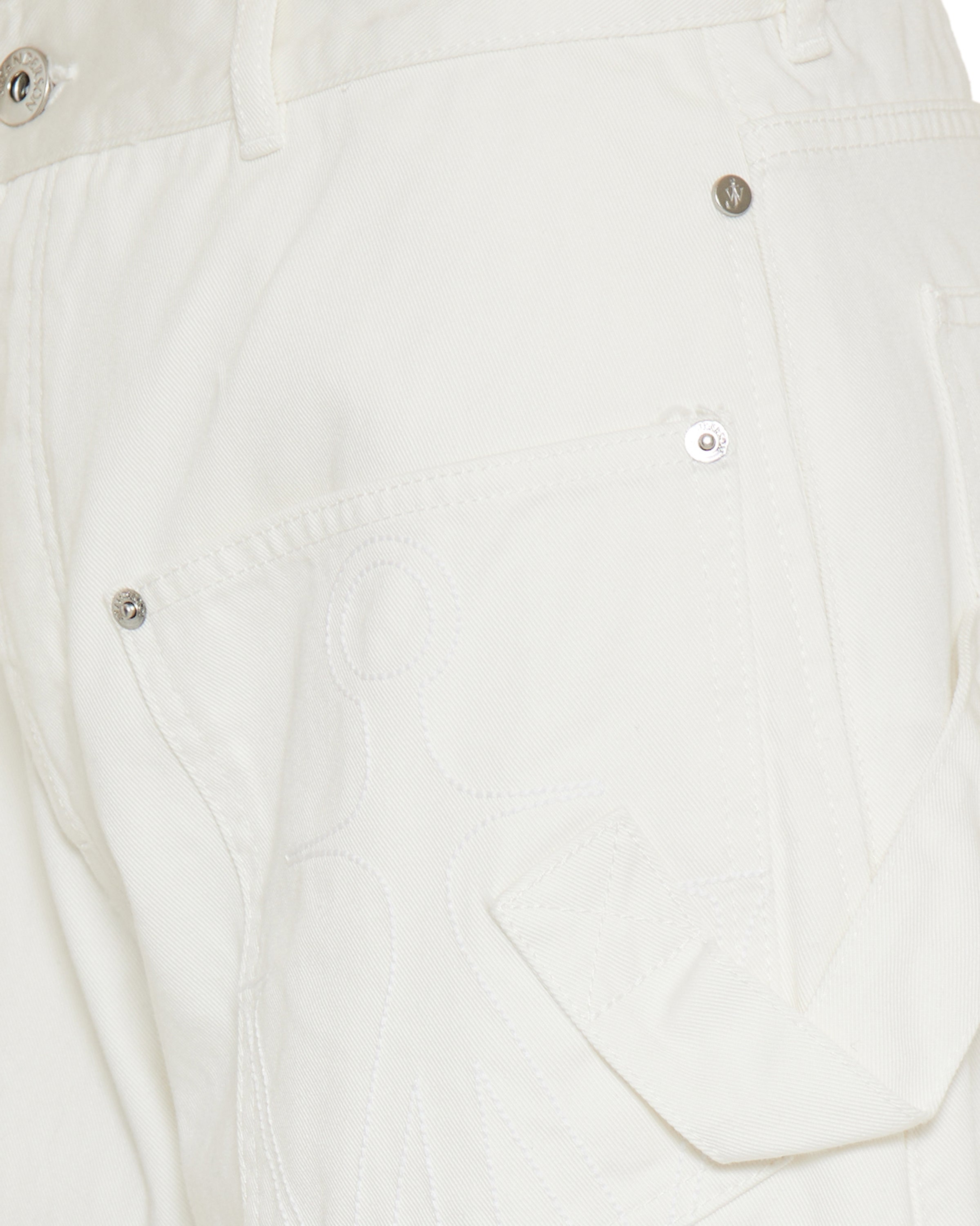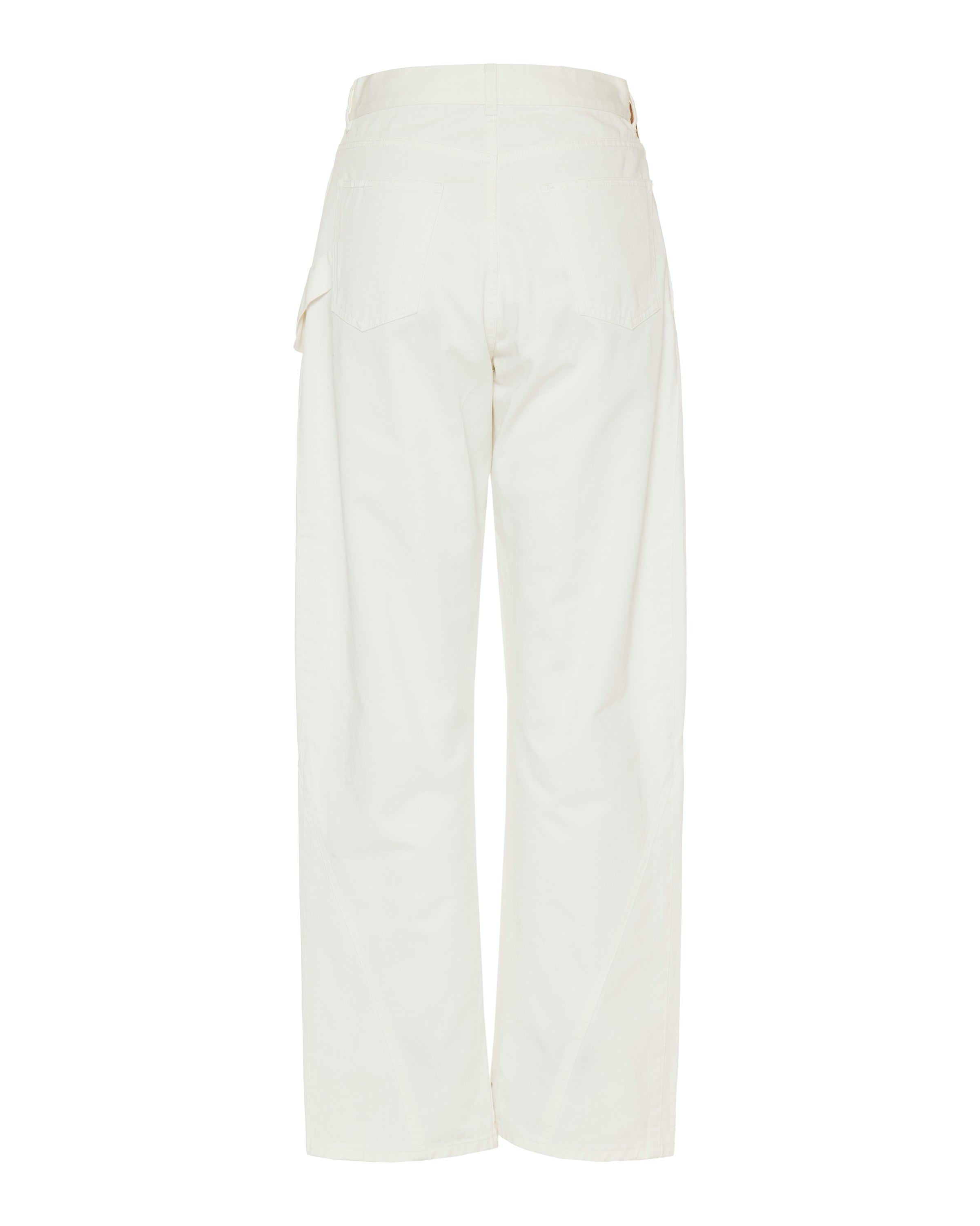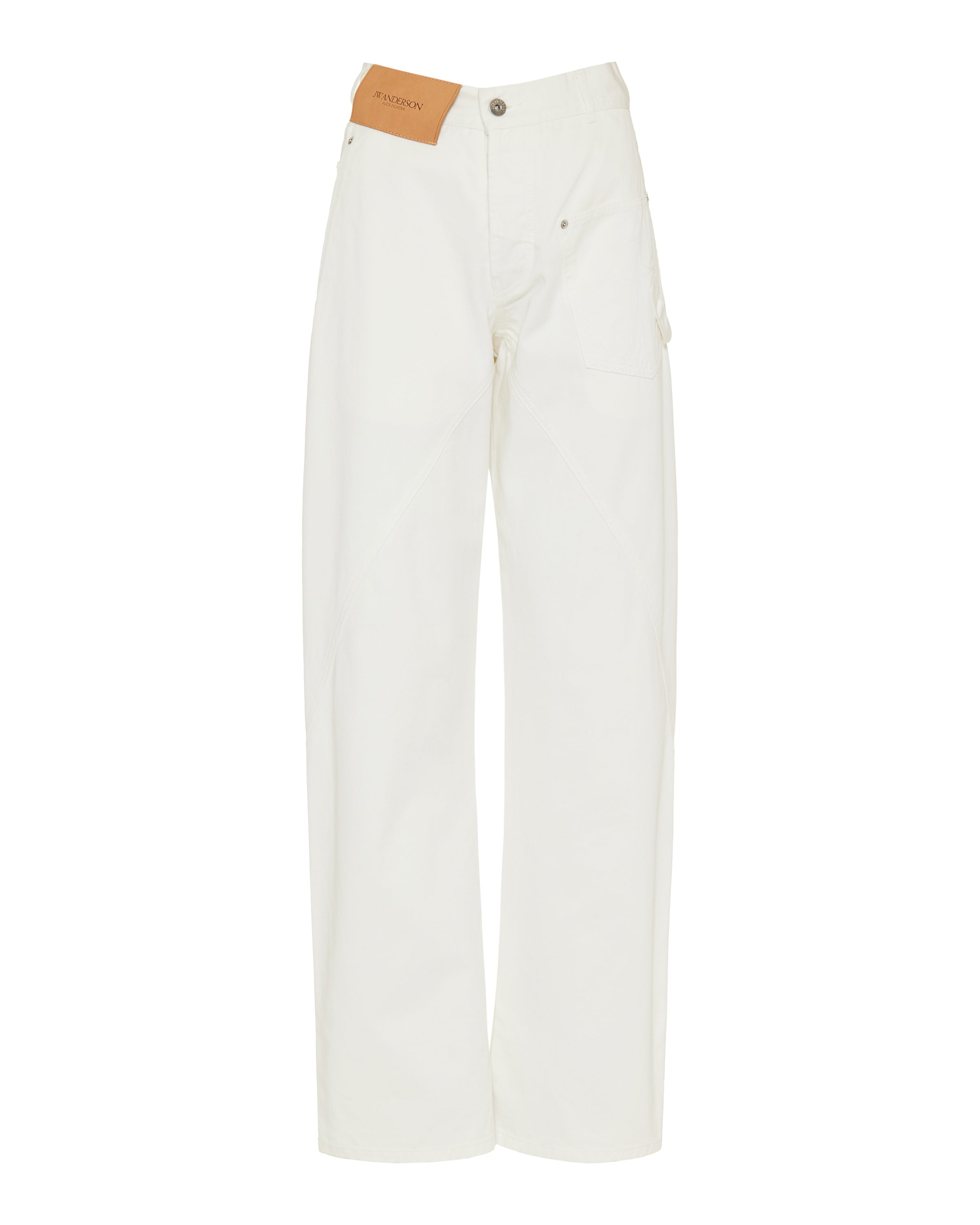 Workwear-inspired jeans crafted from structured denim, defined by a signature twisted seam construction that reshapes the classic straight-leg silhouette. A contemporary reinterpretation of everyday denim.- Cotton denim