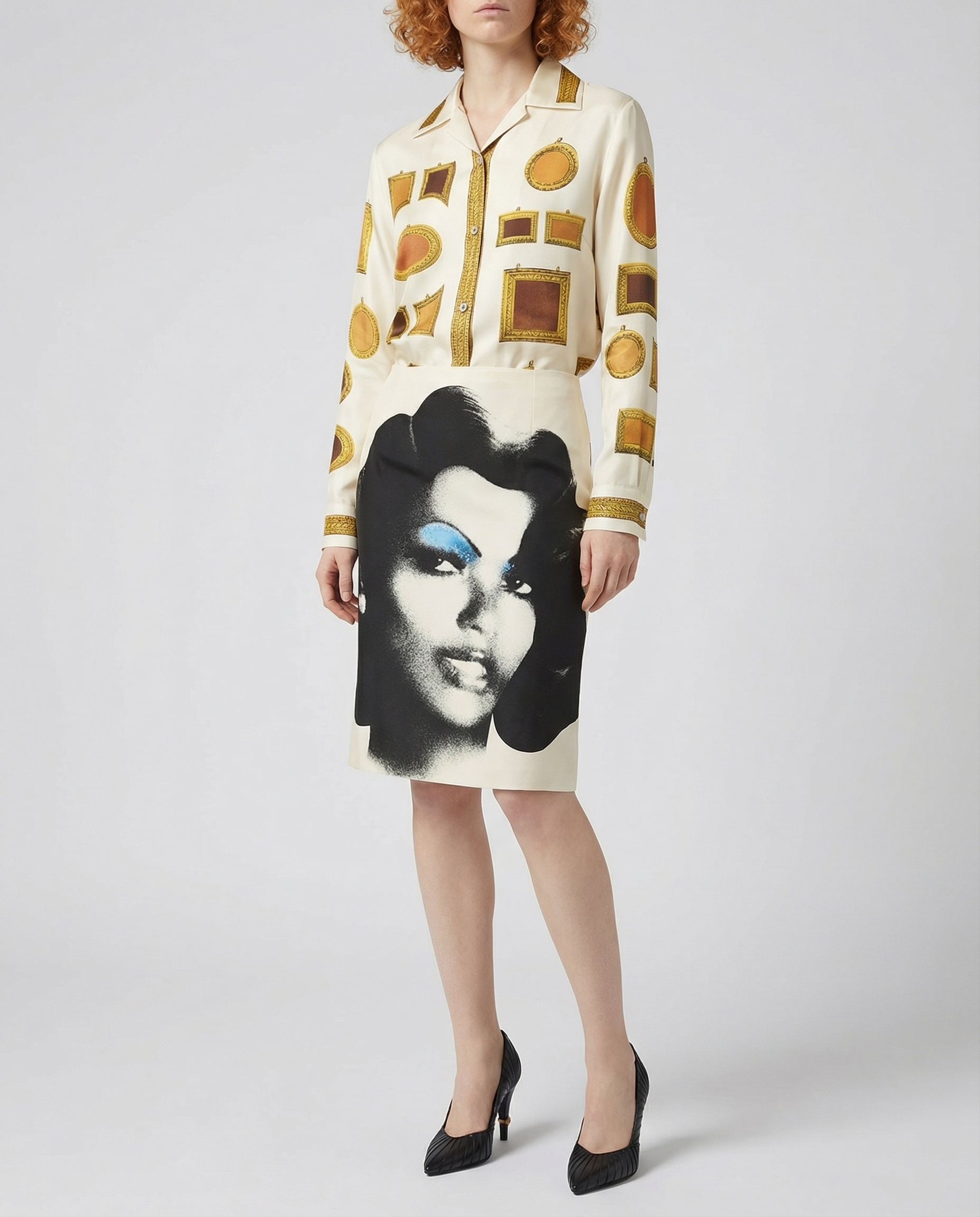 A statement-making shirt in luxurious silk twill, defined by Versace’s signature bold print and a relaxed, flowing silhouette.