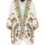 Lightweight beach cover-up adorned with an intricate all-over print, designed with a fluid silhouette for effortless resort styling. An elegant layering piece that moves seamlessly from beachside to sunset moments.- Lightweight fabric