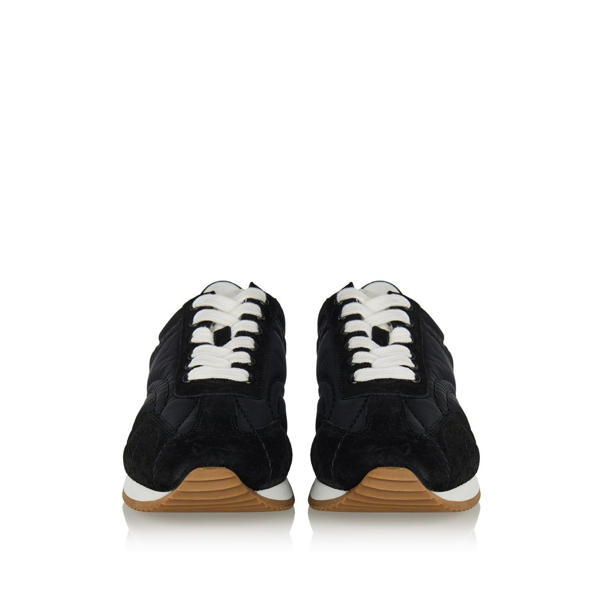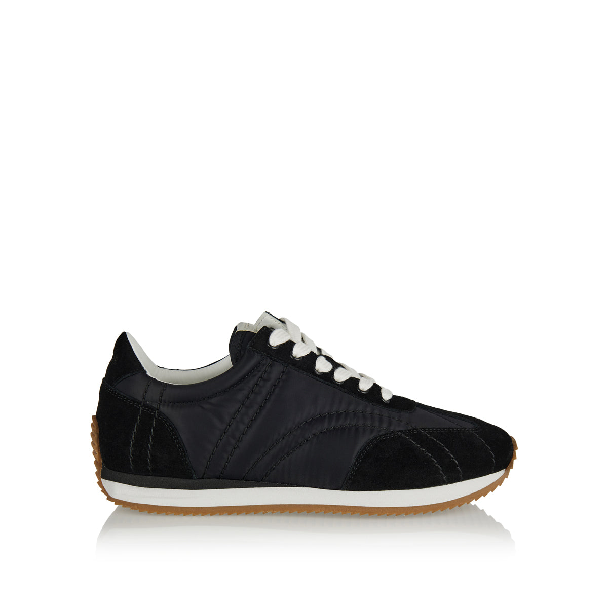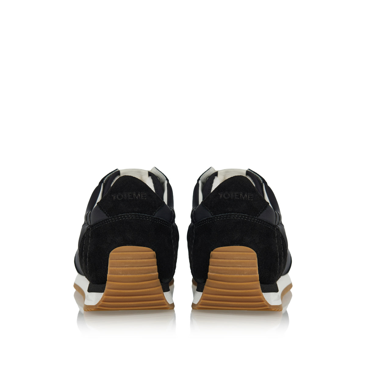 A minimalist and refined low-top sneaker from TOTEME, designed with suede and shell panels, leather trims, and a rubber sole—ideal for elevated casual wear in luxury-driven wardrobes.