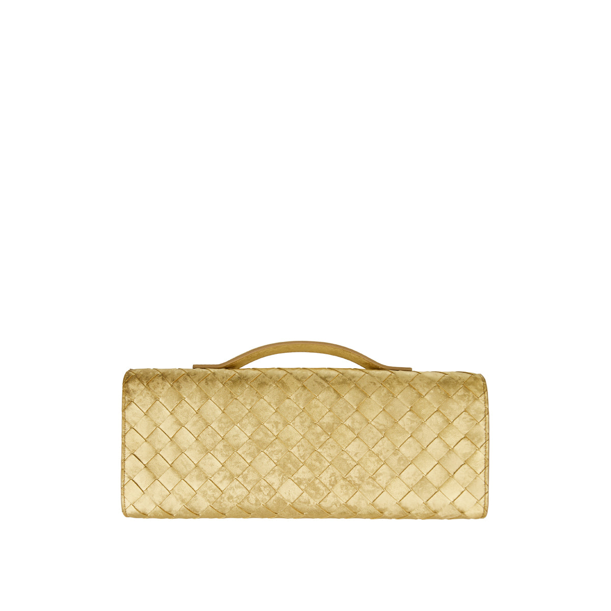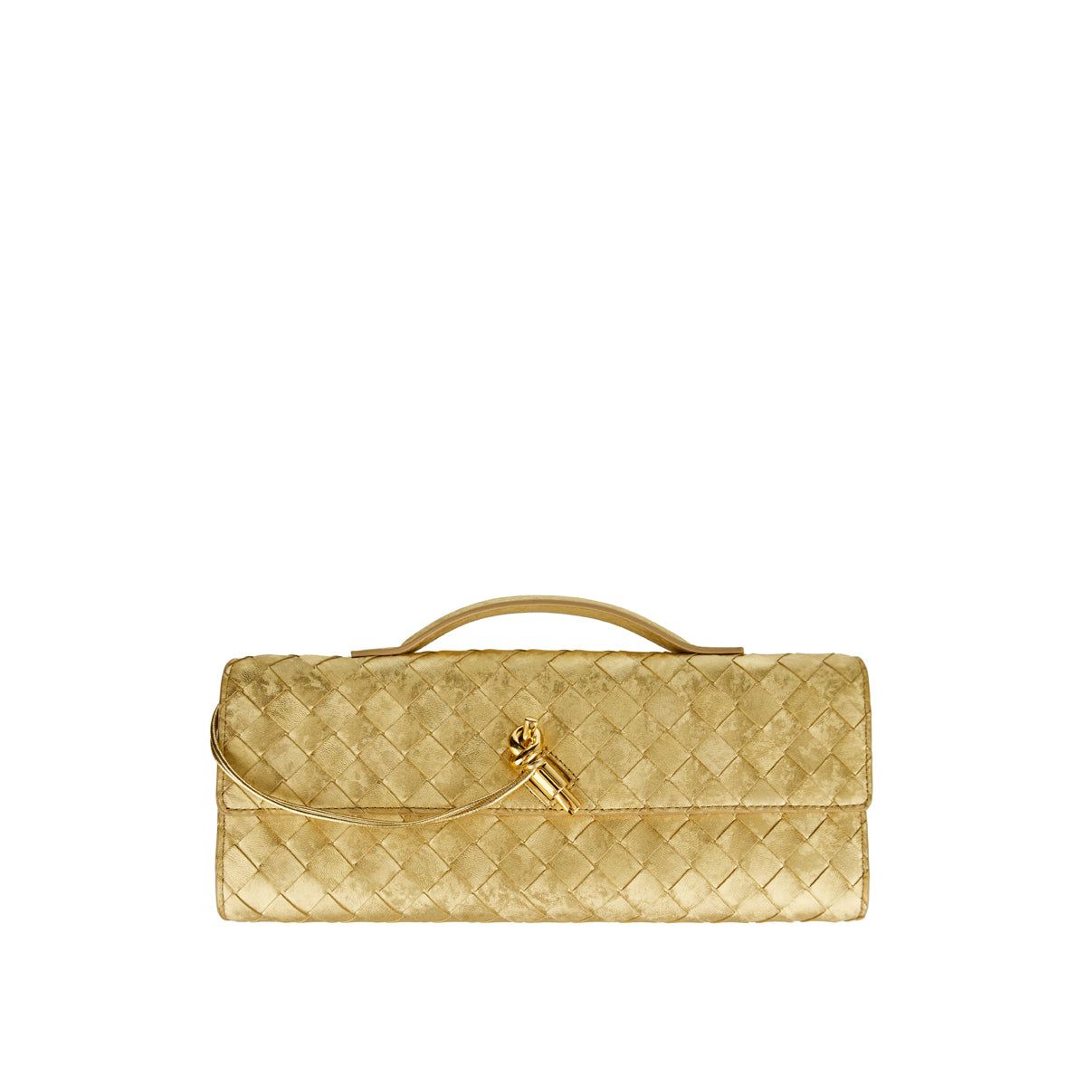 Bottega Veneta's Andiamo clutch bag is crafted from leather and is woven in the historic Intrecciato pattern. Knotted metallic closure, one top handle, six card slots and one additional pocket complete its design.
