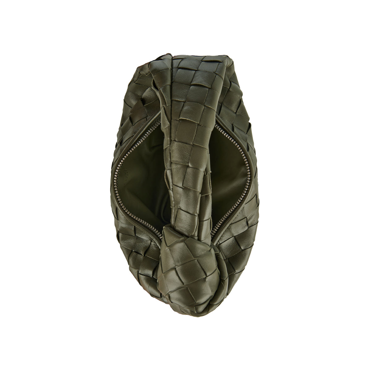 This Jodie model is crafted from leather in a mini rounded hobo silhouette handwoven in the label’s iconic Intrecciato pattern. It has a slouchy design with draping, finished with a knot on the top handle. The zipper opens to one internal compartment equipped with a zipper pocket.