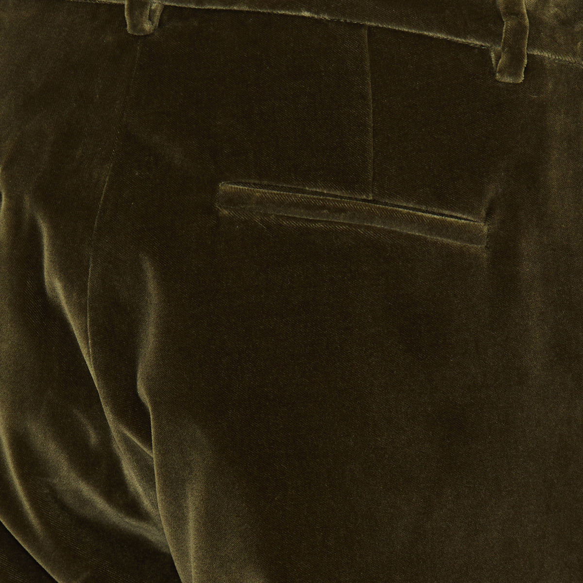 Designed for timeless wearability, the 24/7 Pants by La DoubleJ offer a refined take on everyday tailoring. Crafted from stretch cotton velvet, they feature a flattering high waist and a gently flared leg that elongates the silhouette. The minimalist design in deep moss green adds a touch of understated luxury, making them a versatile choice from casual lunches to polished evening looks.