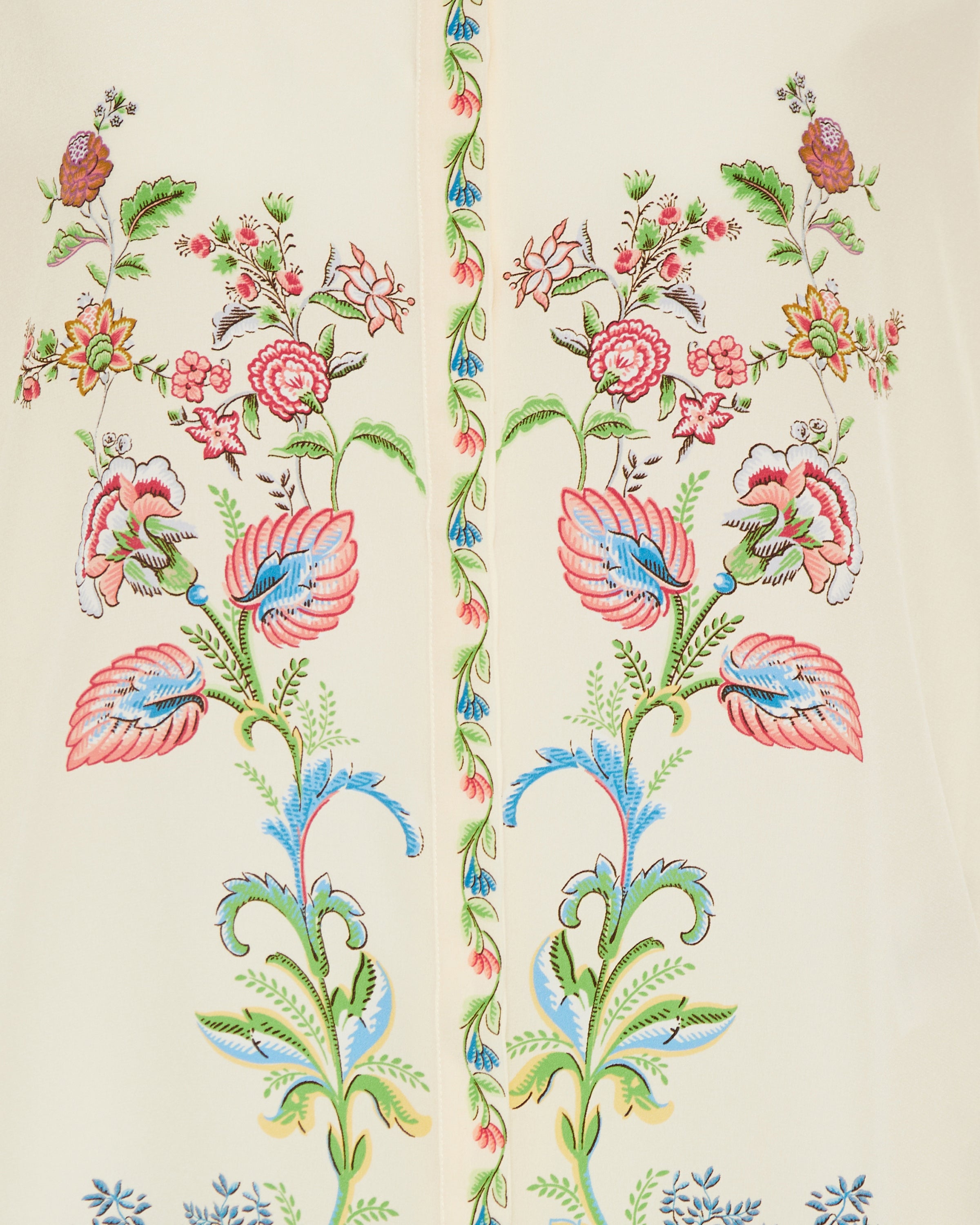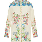 Elegant long relaxed‑fit shirt crafted in 100 % pure silk with a placed floral print and medallion motifs at the collar and yoke. Featuring a classic collar, long sleeves with working cuffs, side vents and concealed button fastening, this Italian‑made silhouette brings artistic sophistication to refined casual and elevated daytime wardrobes.