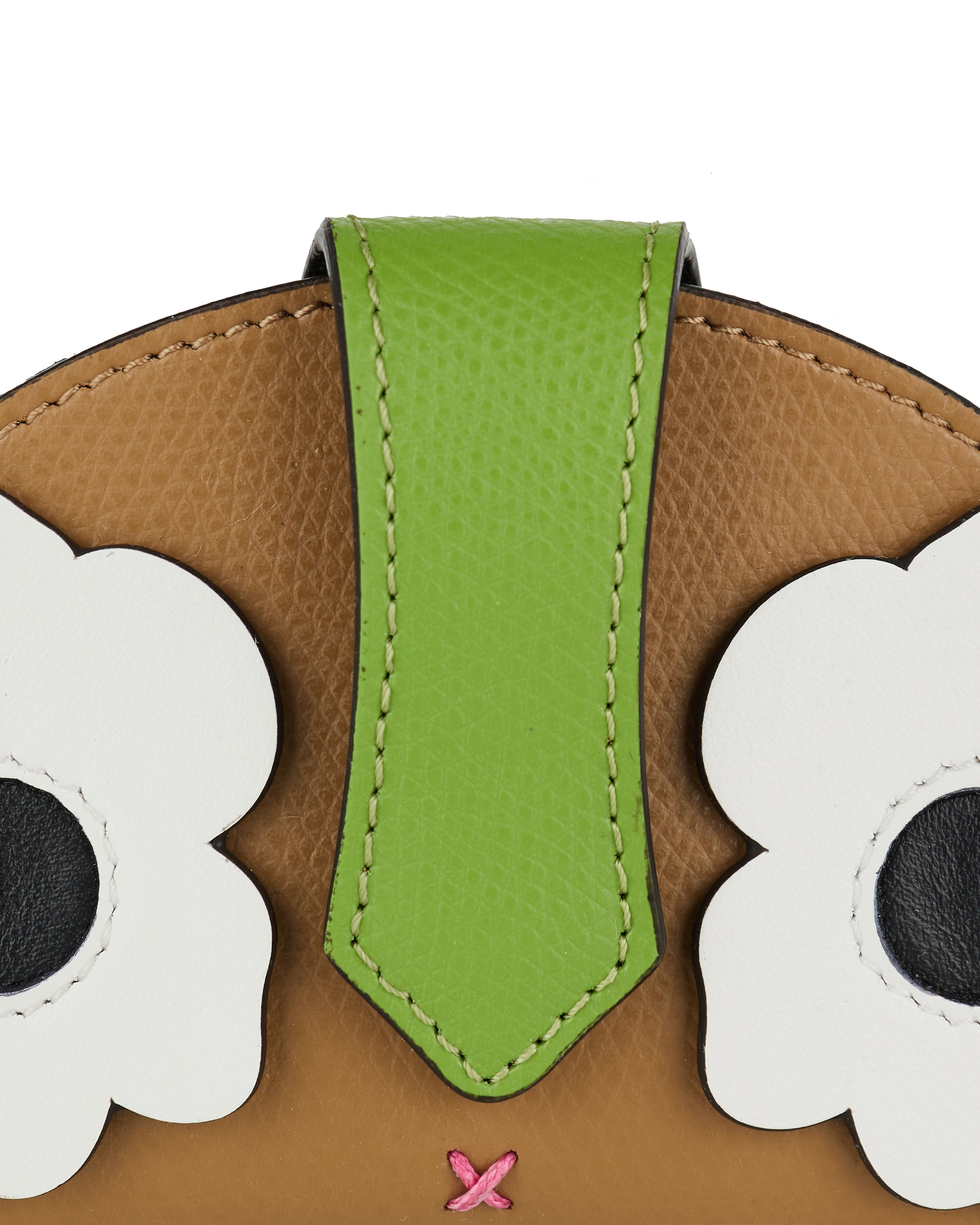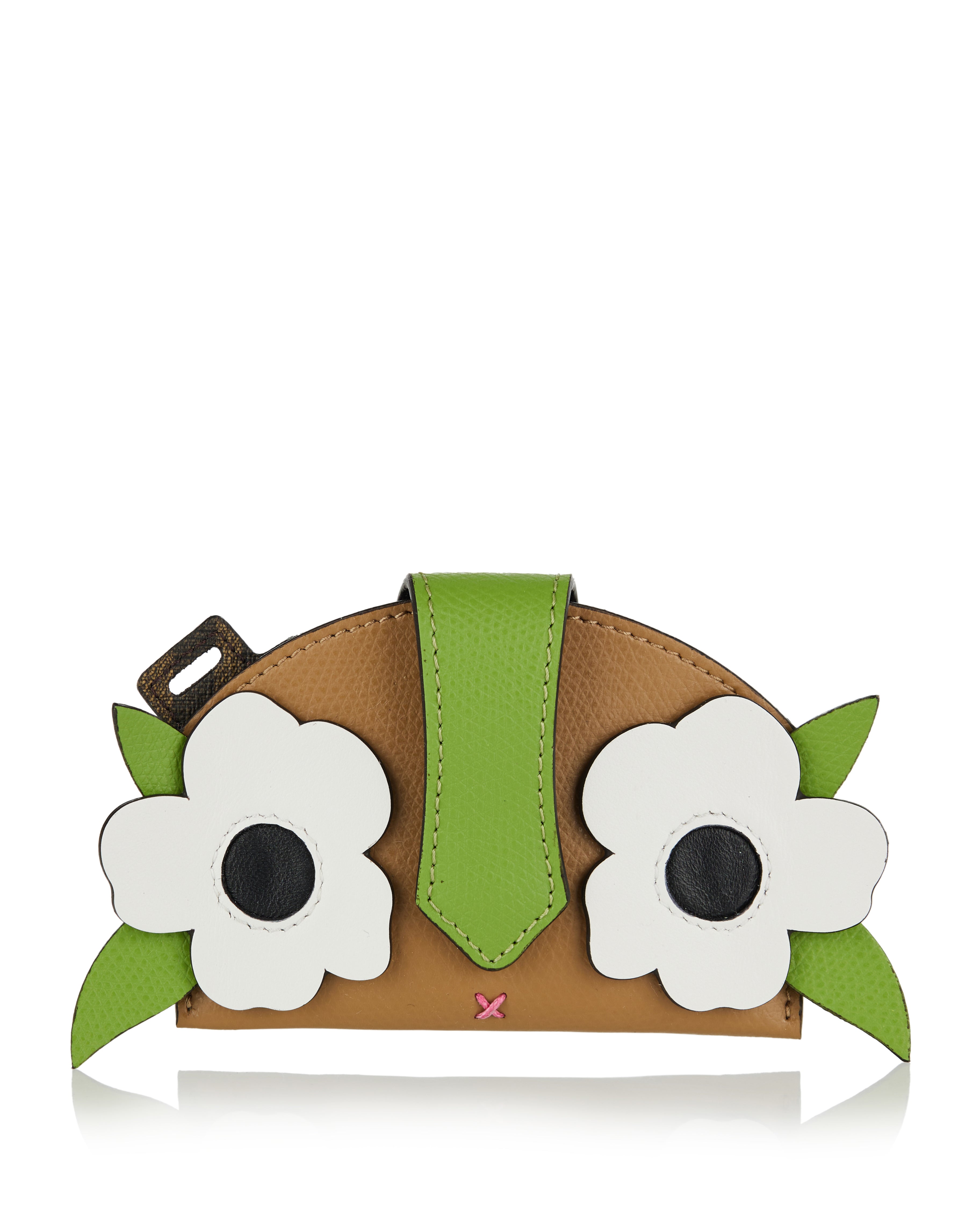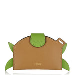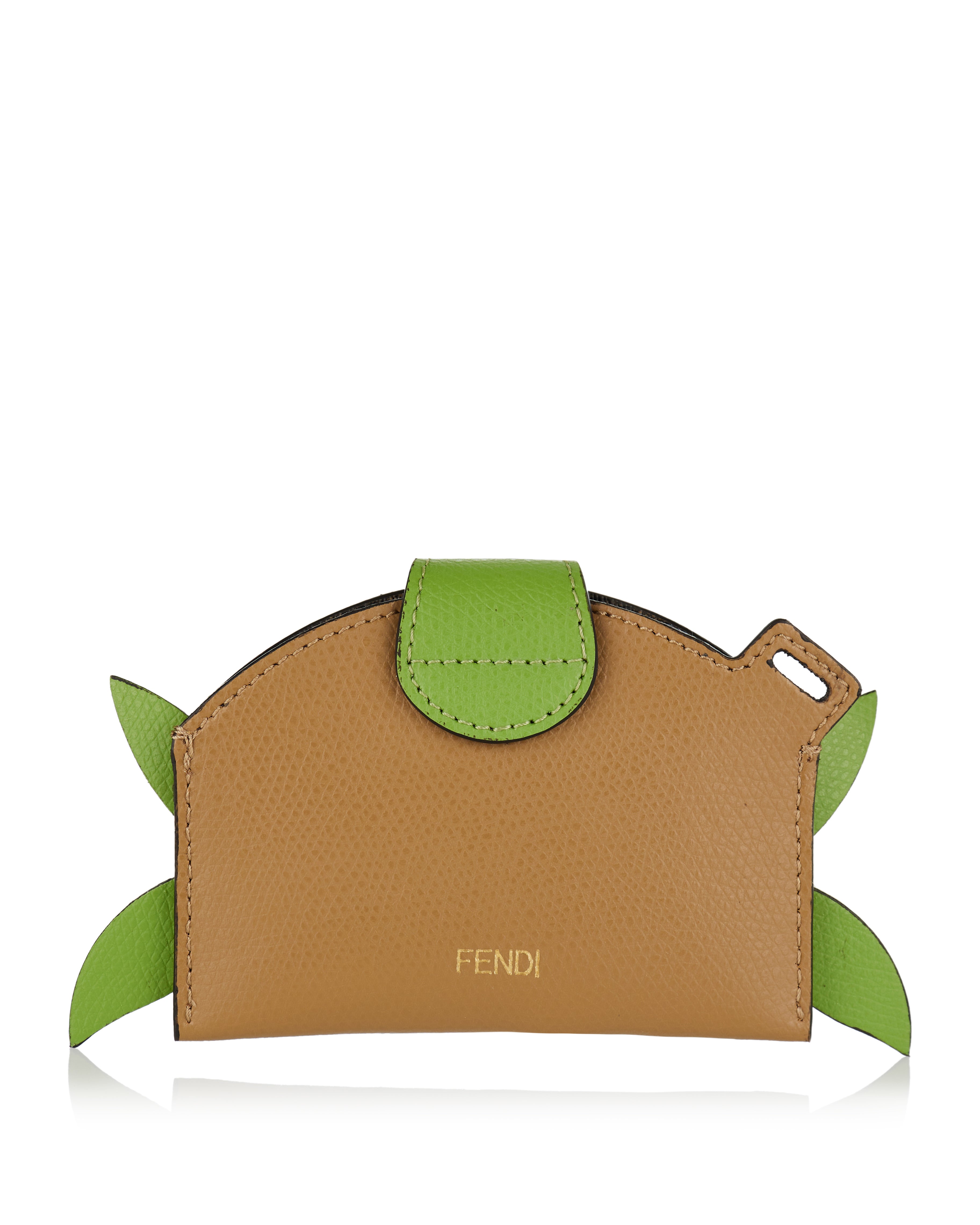 Compact card case crafted from full-grain leather, defined by playful detailing and signature FF accents, designed to combine practicality with distinctive character.