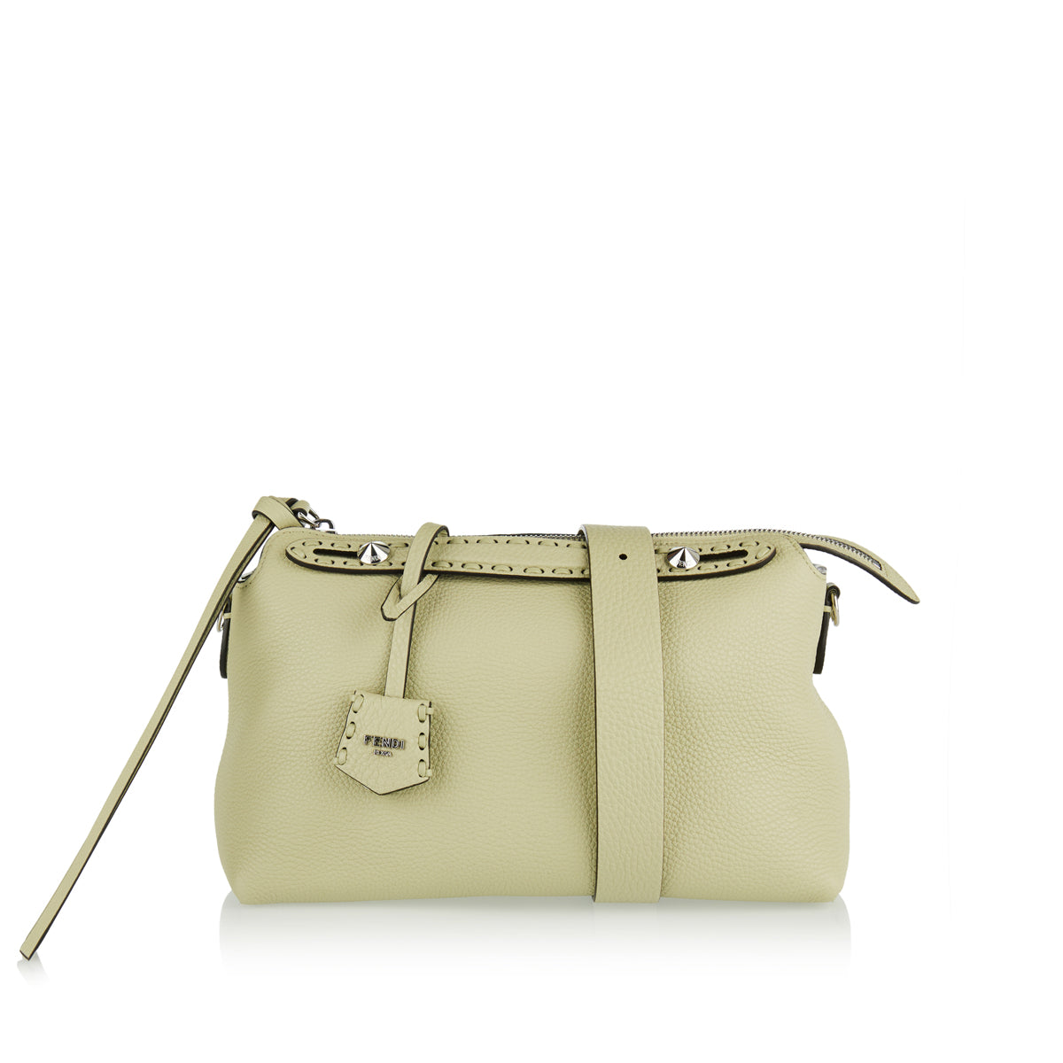 Fendi’s By The Way Selleria medium bag in sage green showcases understated luxury with meticulous hand-sewn detailing. Designed for refined everyday elegance, this structured leather silhouette is perfect for both formal and casual wear, offering functionality through a detachable strap and dual carry options.